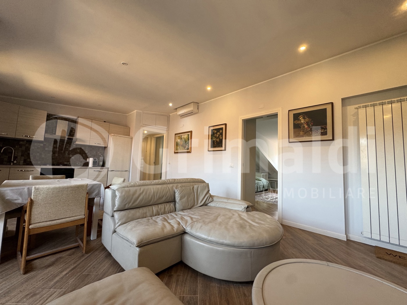 Dotato di riscaldamento autonomo a metano con radiatori a muro e impianto di aria condizionata con 3 split.