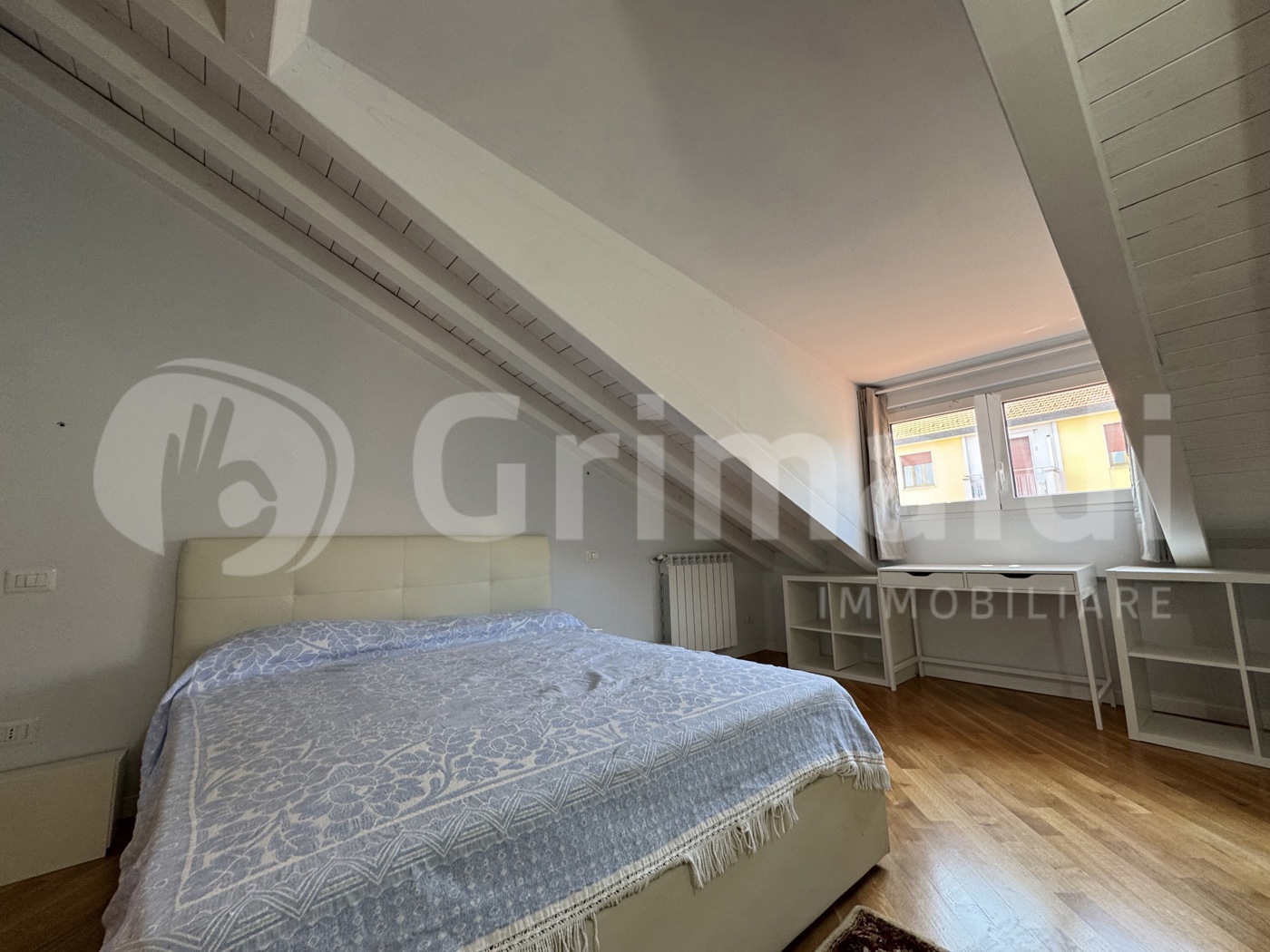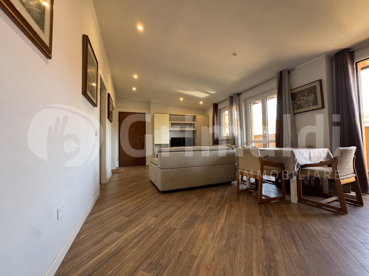 Limmobile rifinito con pavimentazione in parquet e piastrelle, serramenti in alluminio con doppio vetro e porta blindata.