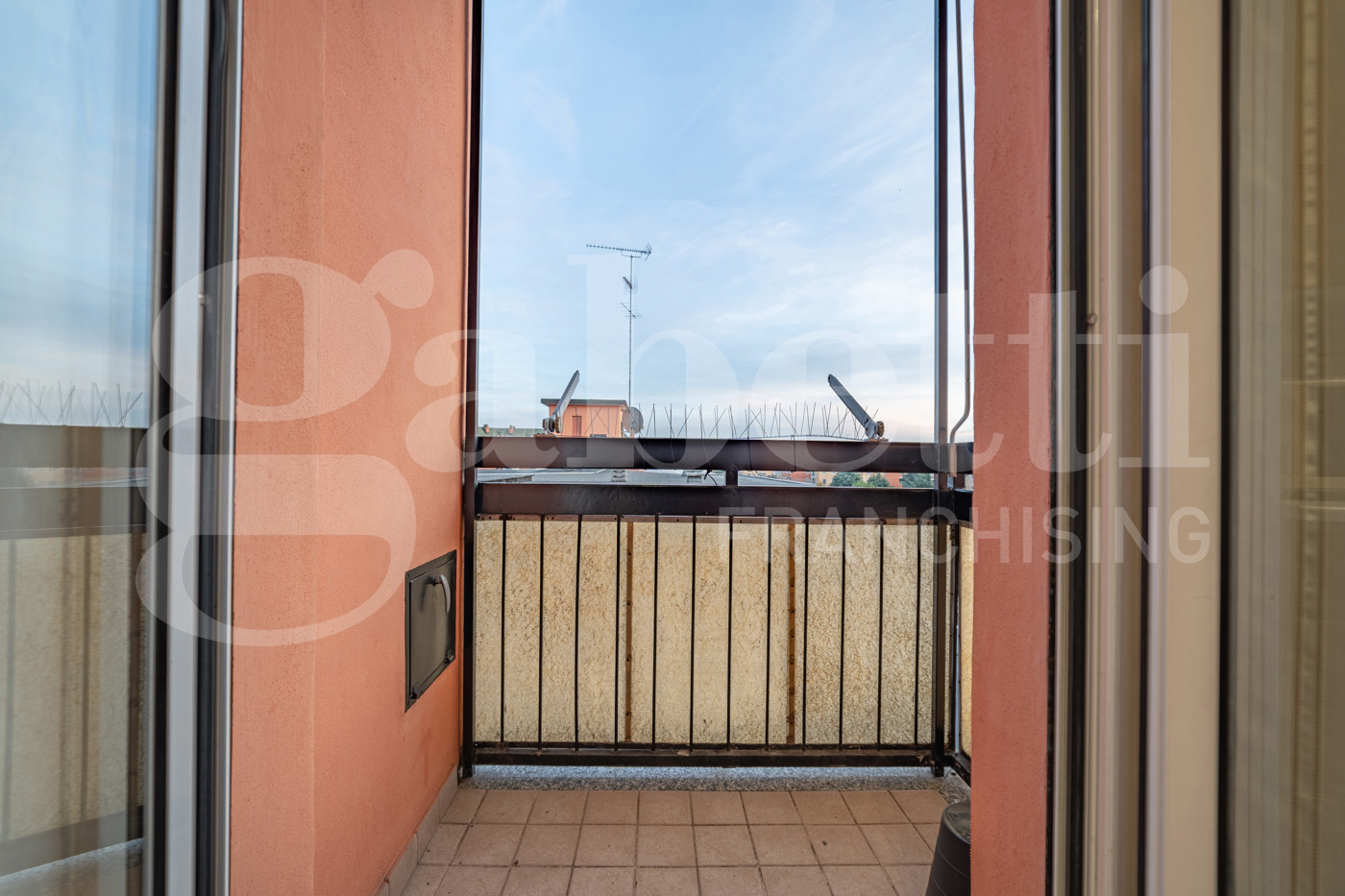Completa la soluzione: infissi in alluminio a tenuta stagna, riscaldamento centralizzato a radiatore ma con valvole termostatiche che consentono di controllare temperatura/consumi, aria condizionata fredda.