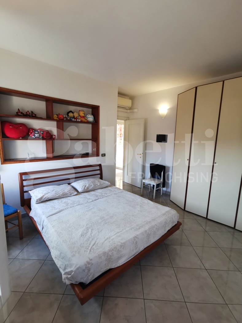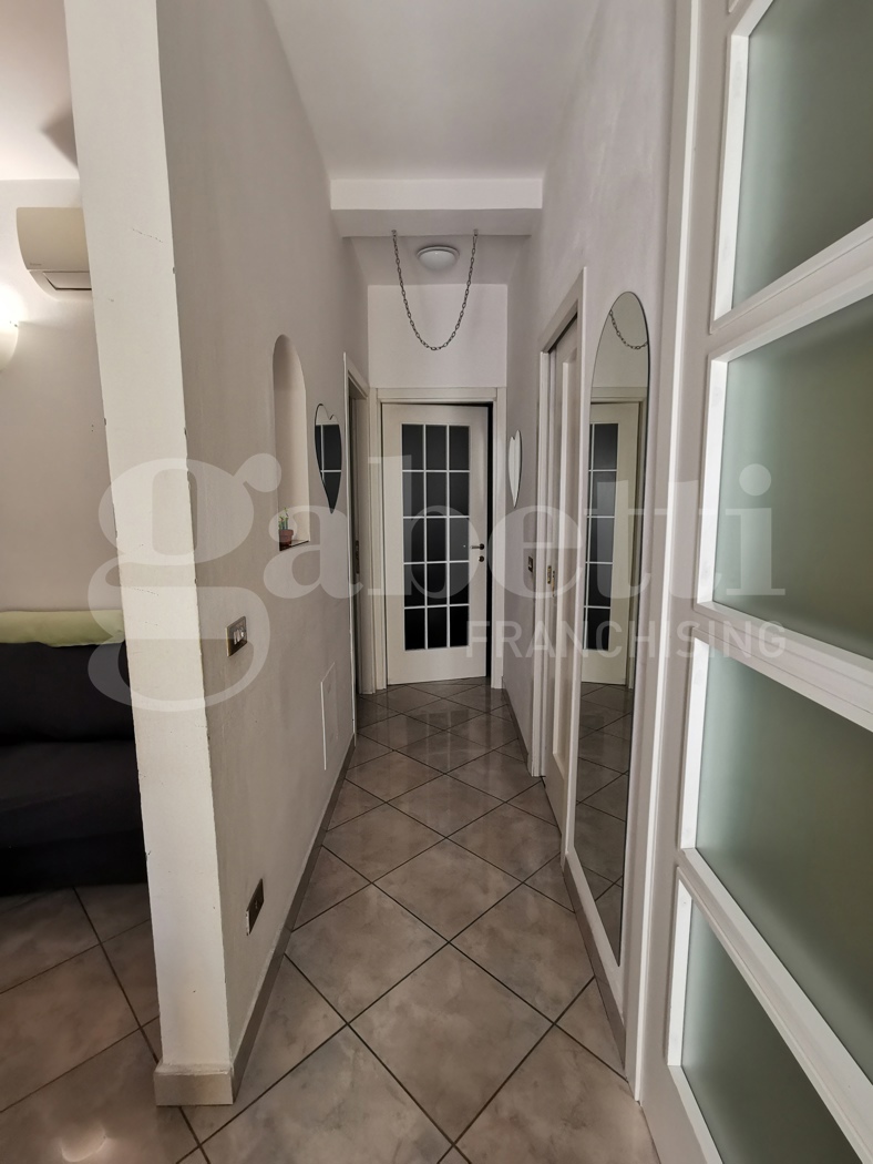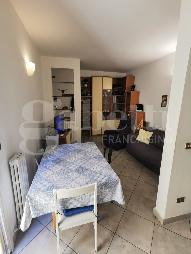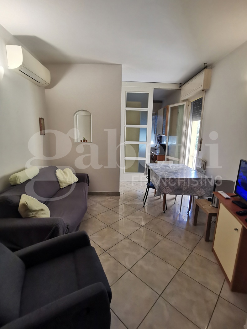 Trilocale in buone condizioni al terzo piano in palazzina con ascensore di quattro piani totali, composto da ingresso, soggiorno, cucinotto, una camera matrimoniale, uno studio con balcone e bagno.