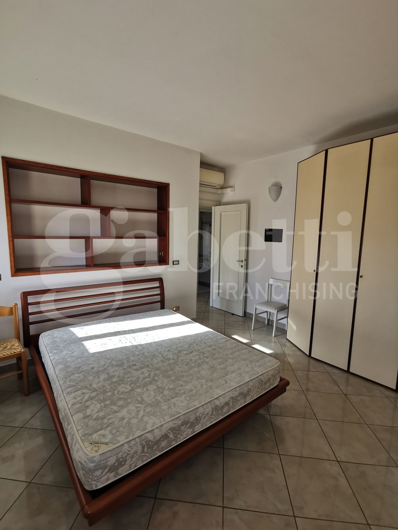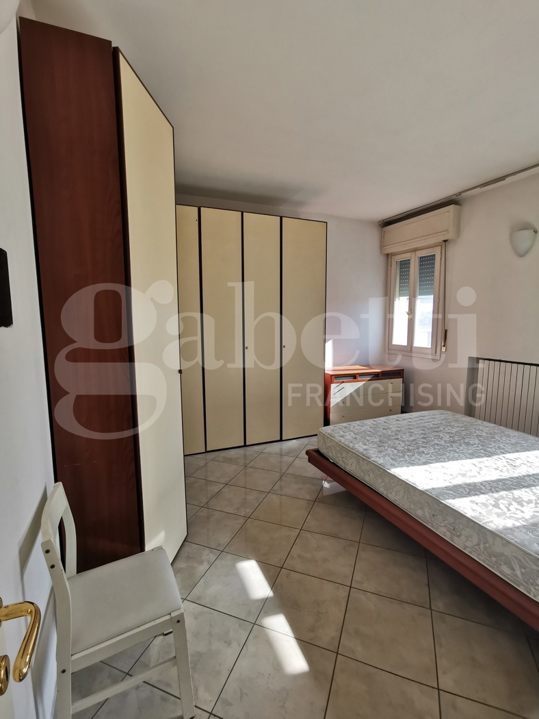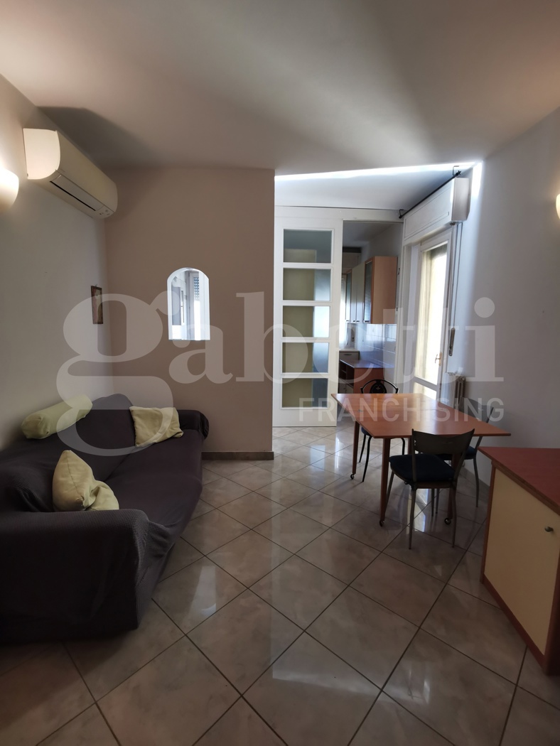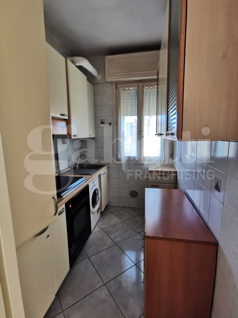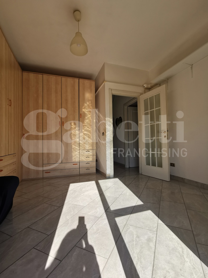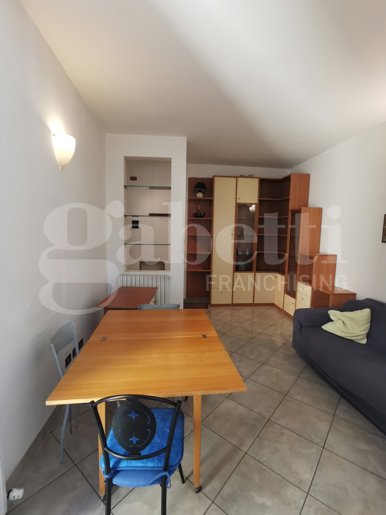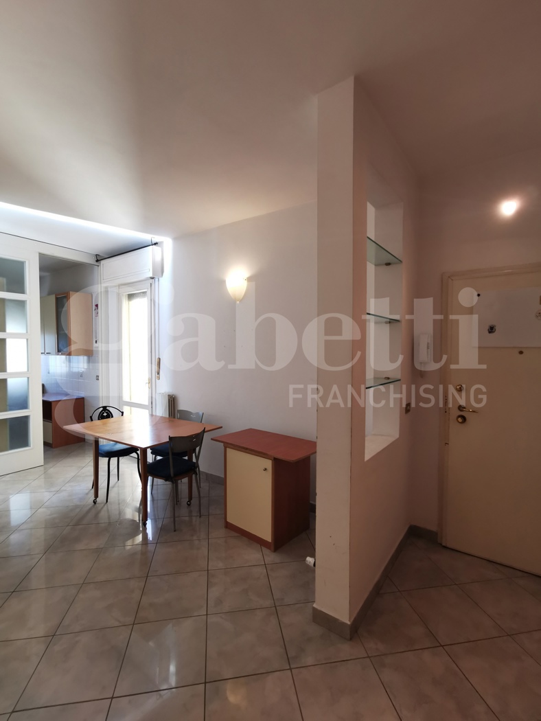 Trilocale in buone condizioni al terzo piano in palazzina con ascensore di quattro piani totali, composto da ingresso, soggiorno, cucinotto, una camera matrimoniale, uno studio con balcone e bagno.