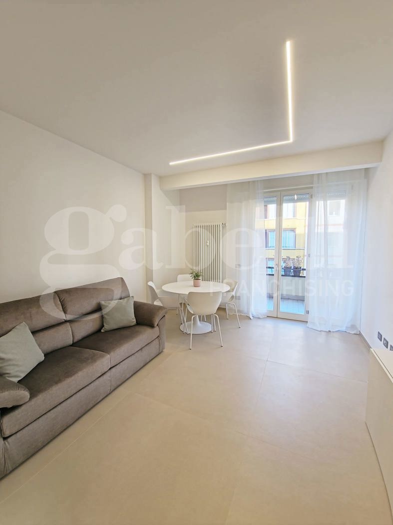 Appartamento ristrutturato recentemente in condominio signorile dotato di servizio di portineria e ascensore, composto da ampia zona living con cucina a vista e accesso al terrazzino, disimpegno, due camere matrimoniali, un balcone e 2 bagni.