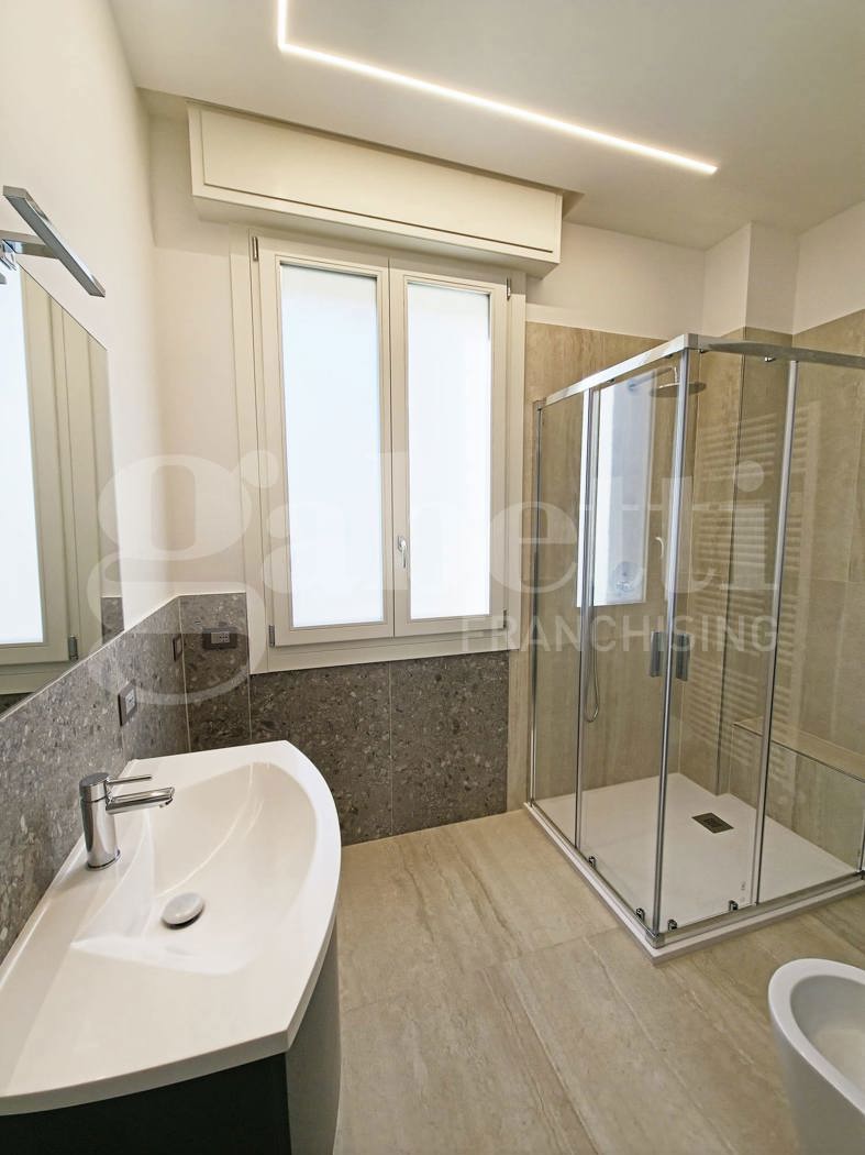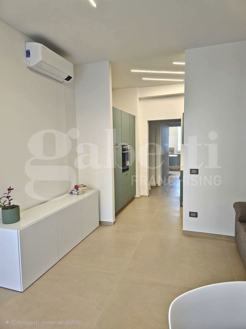 Appartamento ristrutturato recentemente in condominio signorile dotato di servizio di portineria e ascensore, composto da ampia zona living con cucina a vista e accesso al terrazzino, disimpegno, due camere matrimoniali, un balcone e 2 bagni.