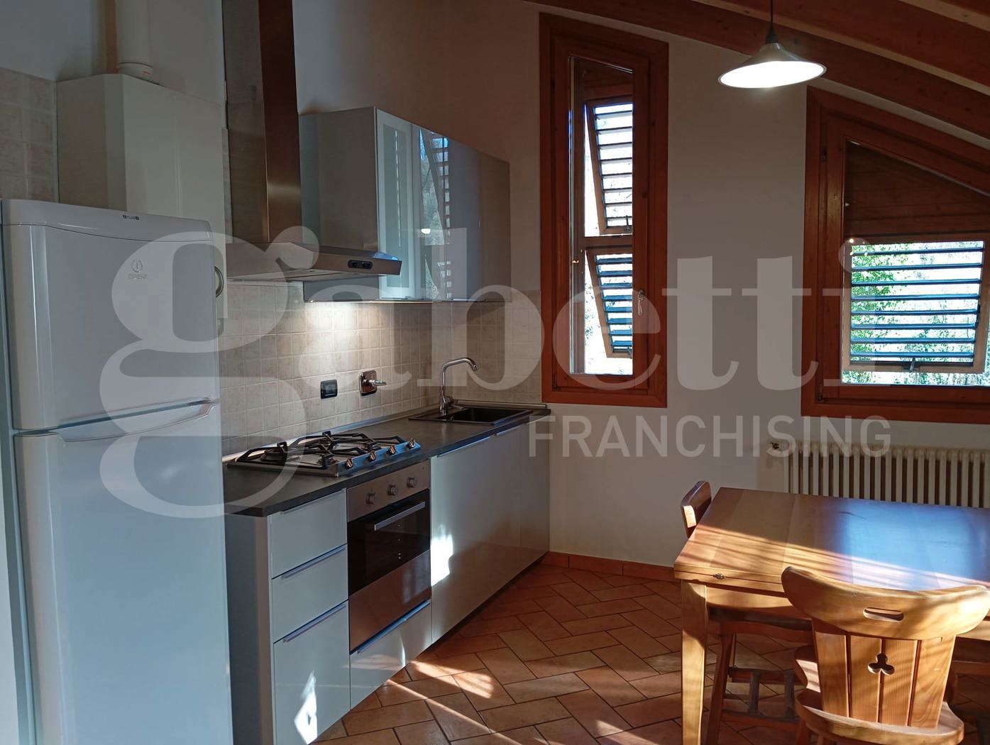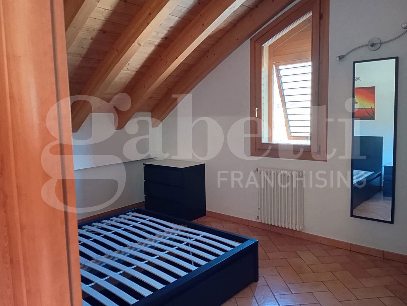 A Calderino, in zona comoda a mezzi e servizi, proponiamo, in affitto, un grazioso appartamento mansardato posto al primo piano con entrata indipendente.