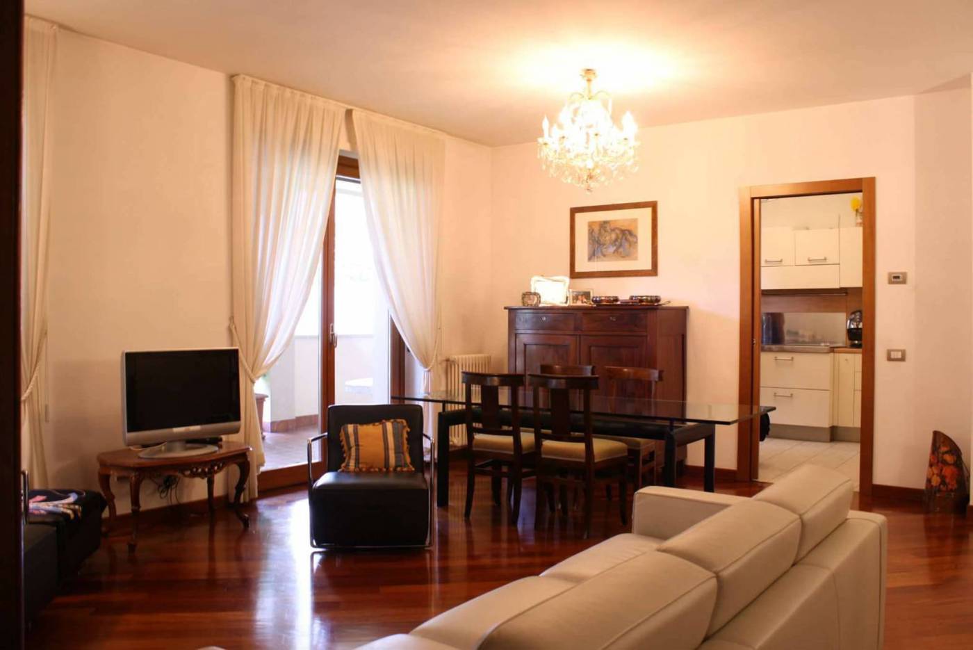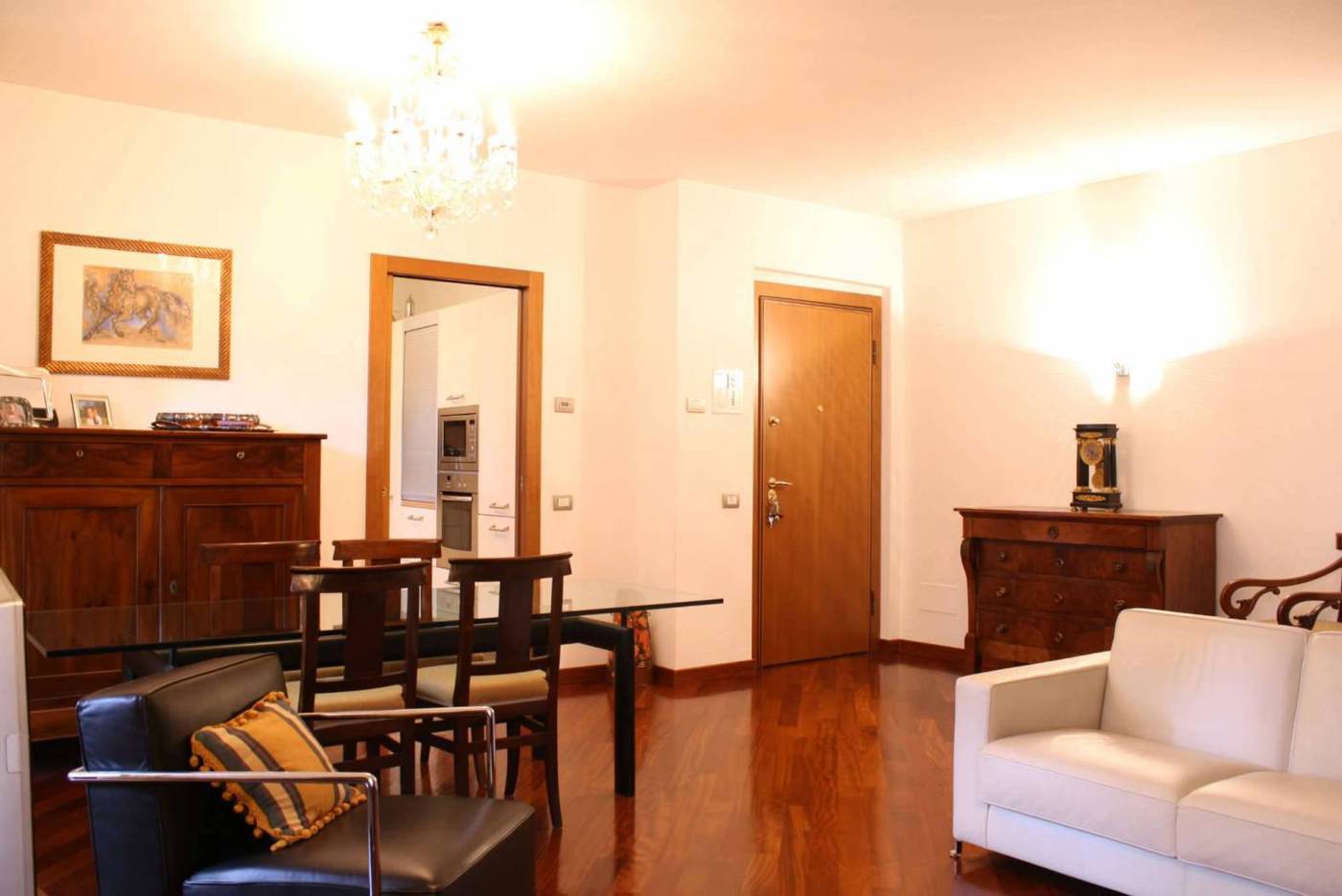 Descrizione A breve distanza da centro, parco e vicinissimo alla stazione, in contesto signorile e di recente costruzione, proponiamo ottimo appartamento totalmente arredato e dotato di ottime finiture, composto da: ingresso, salone e cucina abitabile piacevolmente esposti su un terrazzo loggiato internamente affacciato sul giardino condominiale, zona notte caratterizzata da camera matrimoniale, cameretta e doppi servizi.