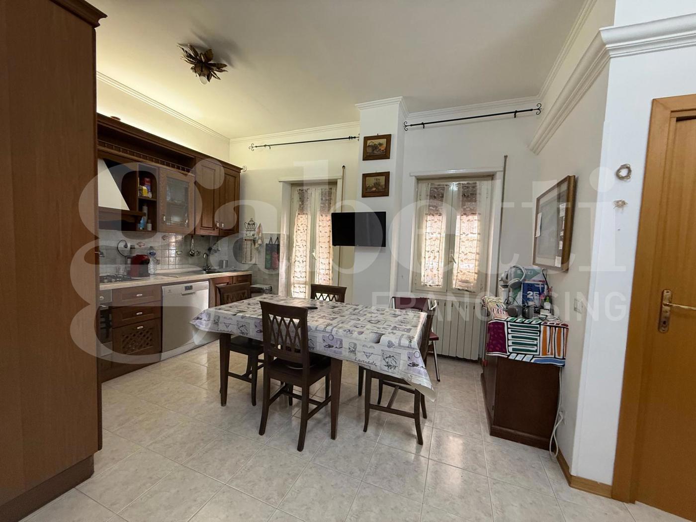L'immobile composto da soggiorno con angolo cottura, disimpegno, camera matrimoniale, cameretta, ripostiglio e doppi servizi.