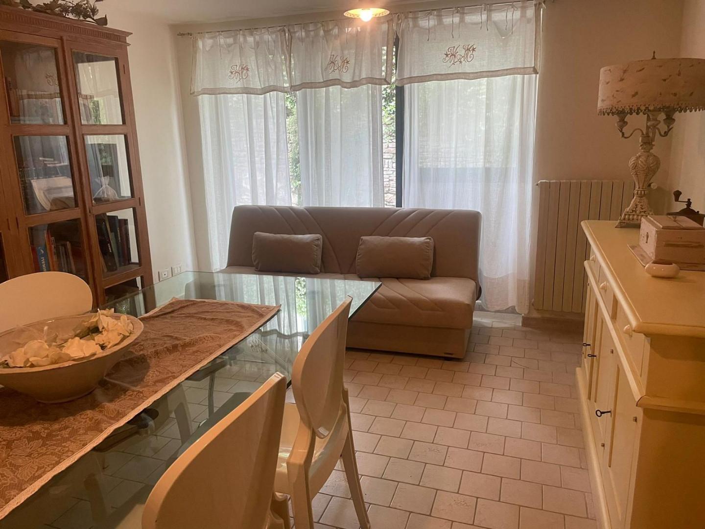 L ' appartamento al suo interno è composto da soggiorno con camino, cucina abitabile, 2 ripostigli, camera da letto matrimoniale, bagno con finestra e cabina doccia oltre alla possibilità di poter utilizzare l'uso del giardino in comune con il proprietario della villa singola e anche una bellissima veranda esterna per pranzi e cene all'aperto, solo per 1 persona, seria e referenziata, solo uomo, periodo max 2/3 anni, no animali.