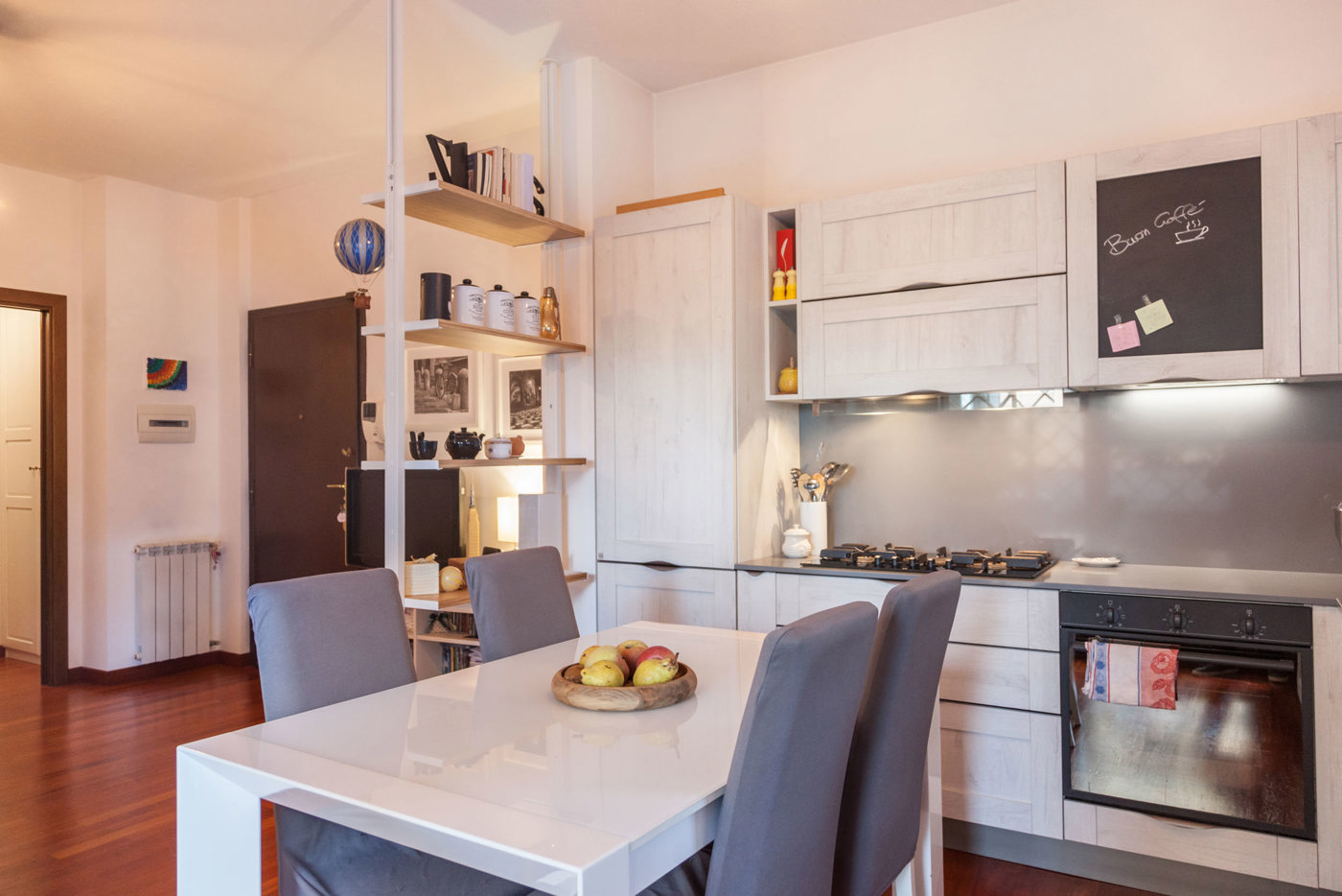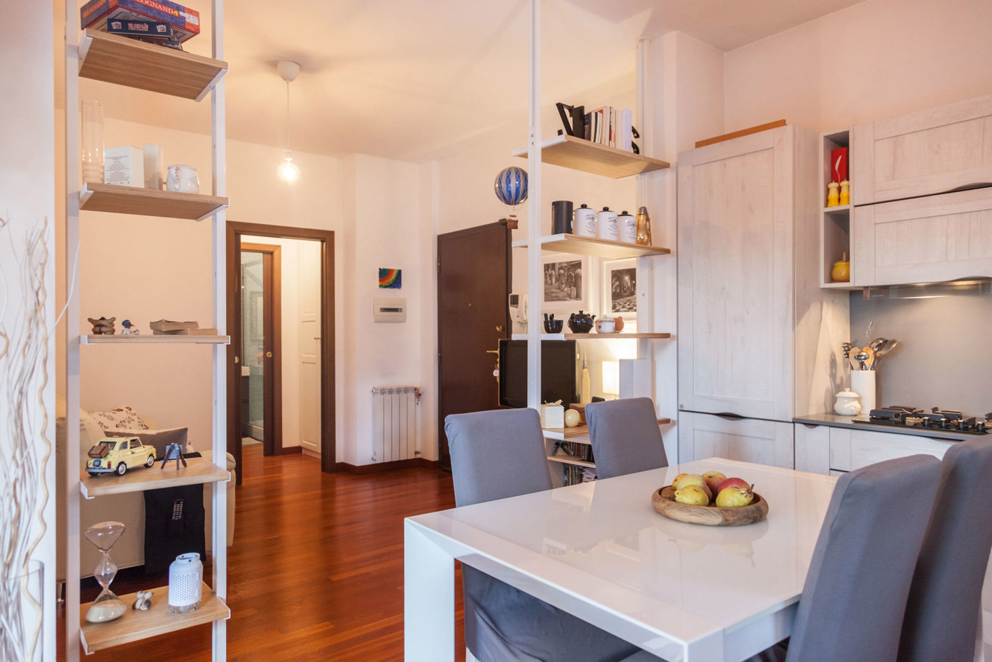 L'appartamento composto da soggiorno con ampia cucina a vista ed affaccio sul terrazzo, uno spazio da vivere sia come angolo relax sia come ambiente dedicato ai momenti di convivialit, soprattutto nelle belle serate estive e primaverili, due camere da letto e servizio.