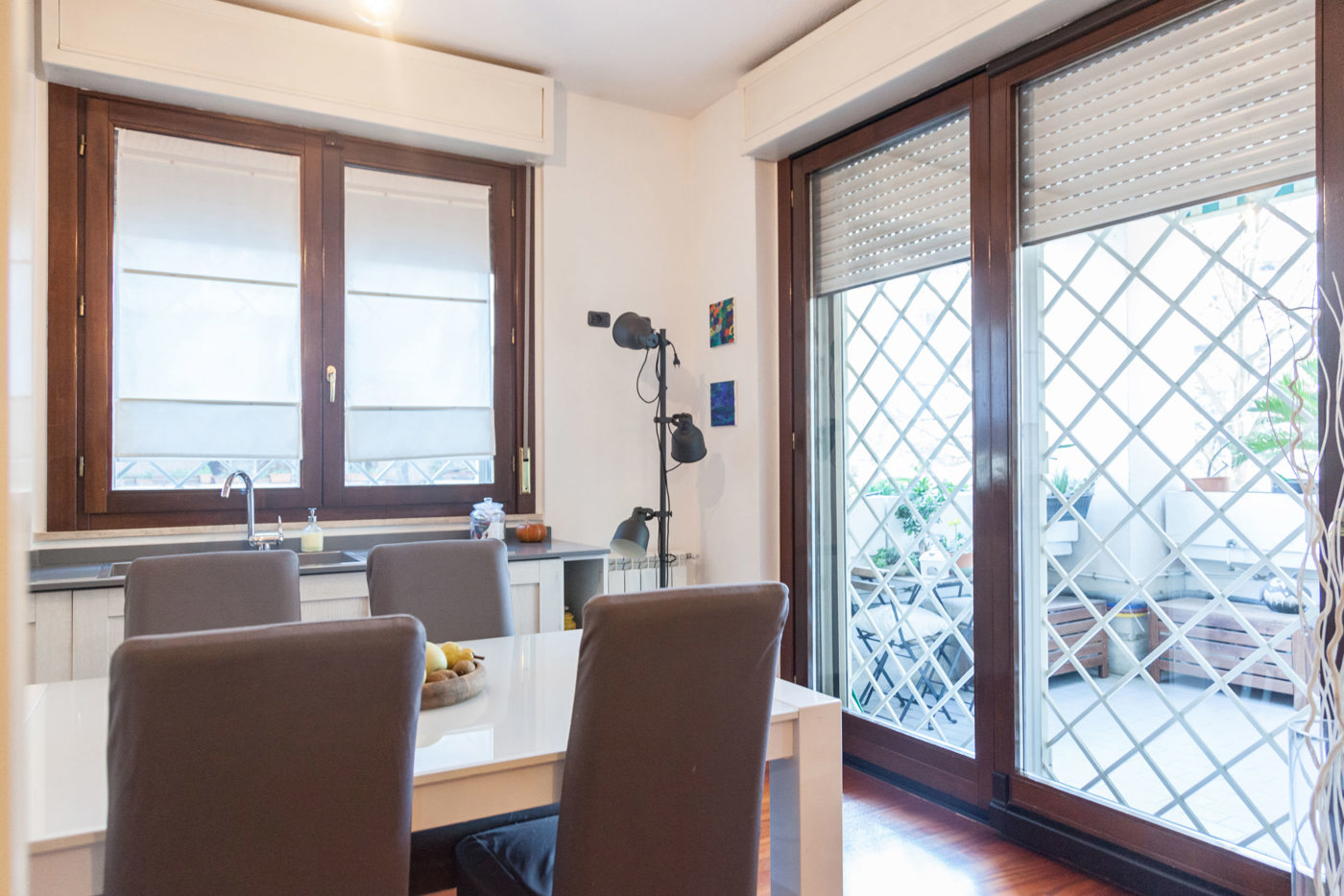 Punti di forza dell'immobile sono le vetrate con ottima esposizione solare, che donano naturale luminosit e vivibilit agli ambienti e, soprattutto, la sapiente ristrutturazione interna eseguita con materiali di pregio e ricercatezza nei dettagli che ha previsto, tra l'altro, la posa di parquet Listone Giordano e mosaico nel servizio.