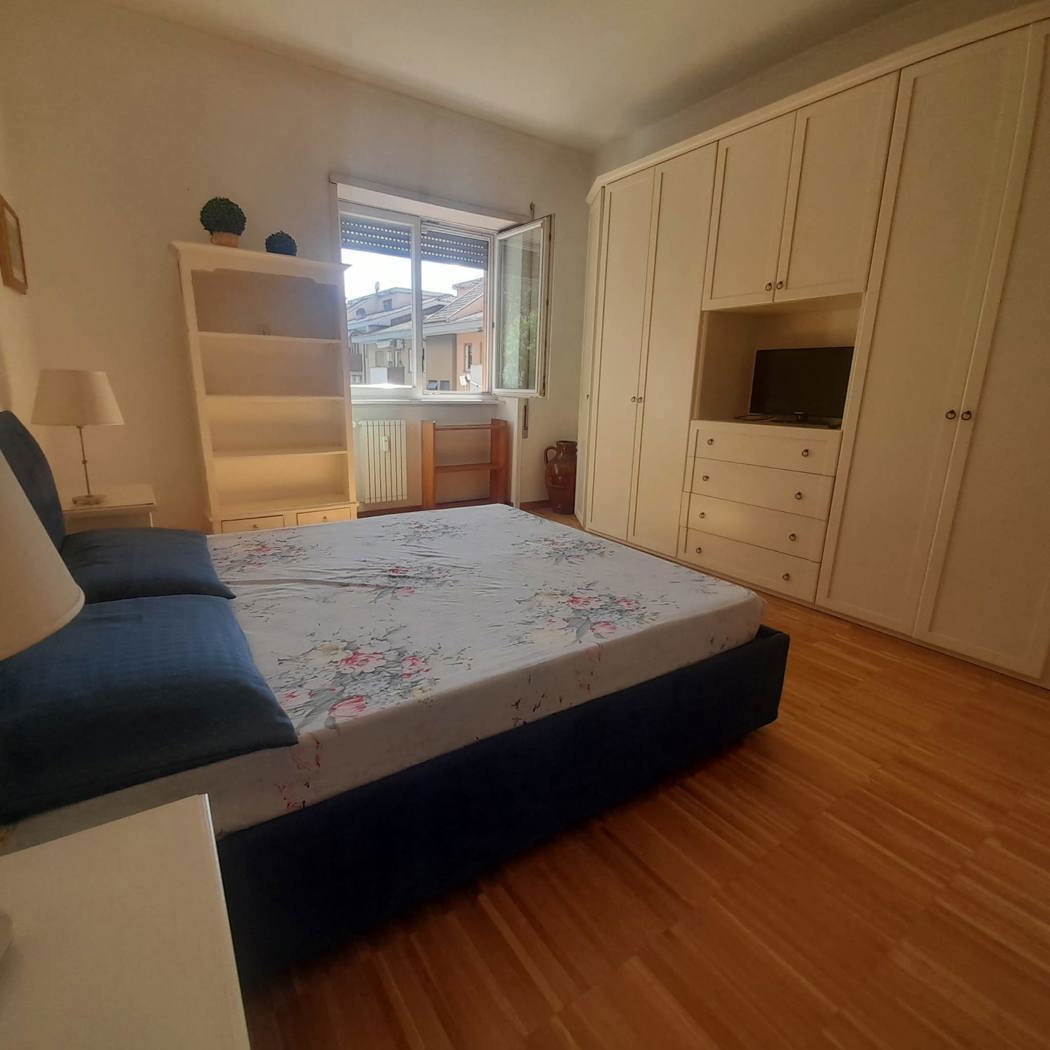 Proponiamo in affitto a Roma, ampio appartamento trilocale arredato di 102 mq composto da: soggiorno, cucina abitabile, due camere da letto e 2 bagni, completano la soluzione un posto auto scoperto e una cantina. Appartamento ristrutturato con riscaldamento centralizzato posto al 4° piano con ascensore di uno stabile con giardino condominiale dell'anno 1962. Contatta l'inserzionista