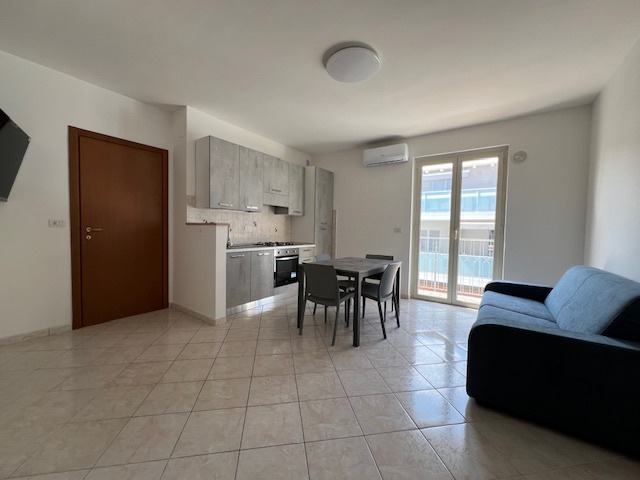 ROSETO DEGLI ABRUZZI Residenza Milli Zona centrale, distanza spiaggia 150 mt Servizi tutti nelle immediate vicinanze Appartamento al piano primo appena arredato composto da: soggiorno con angolo cottura e divano letto, camera matrimoniale, cameretta, bagno e balcone.