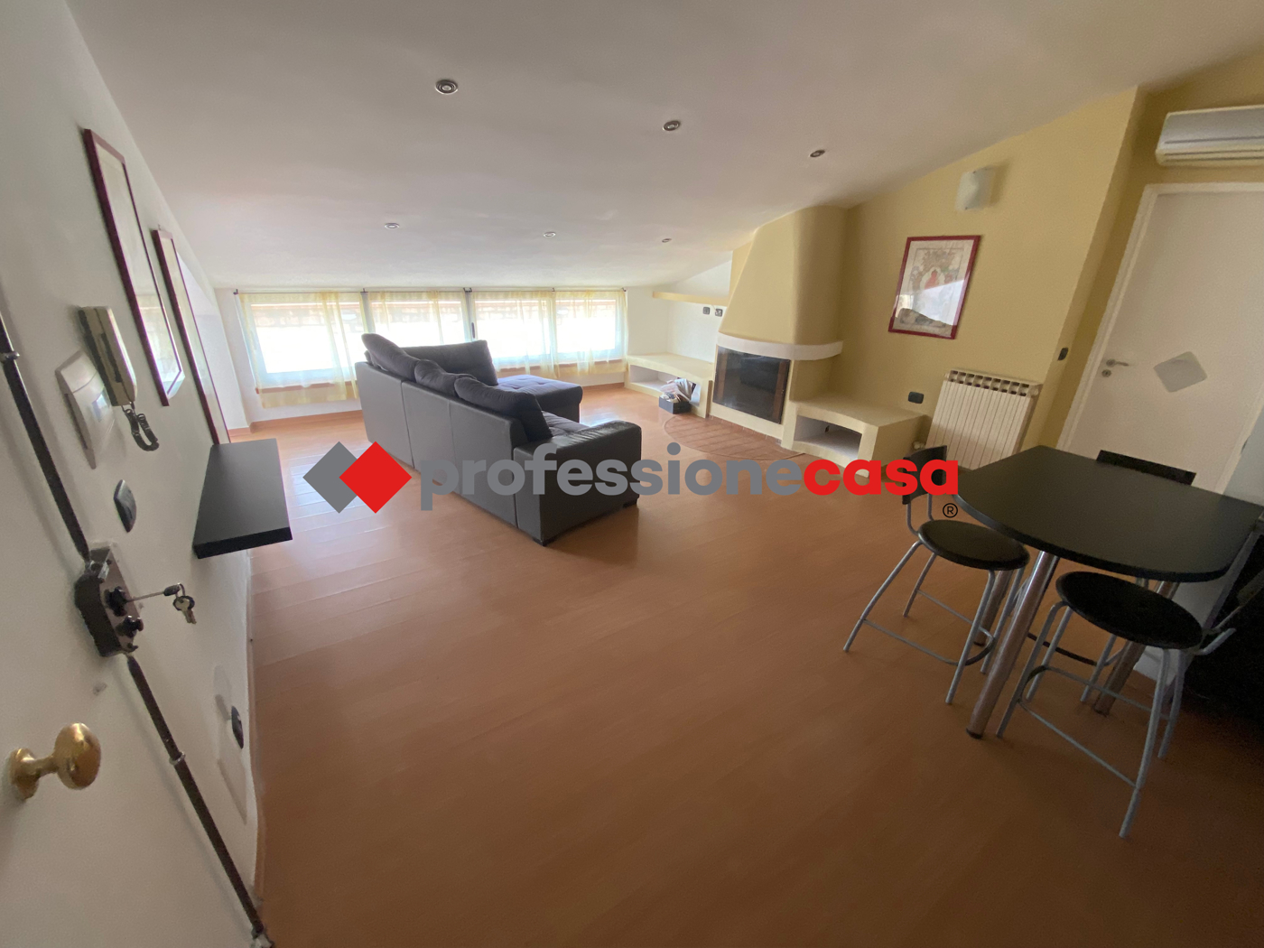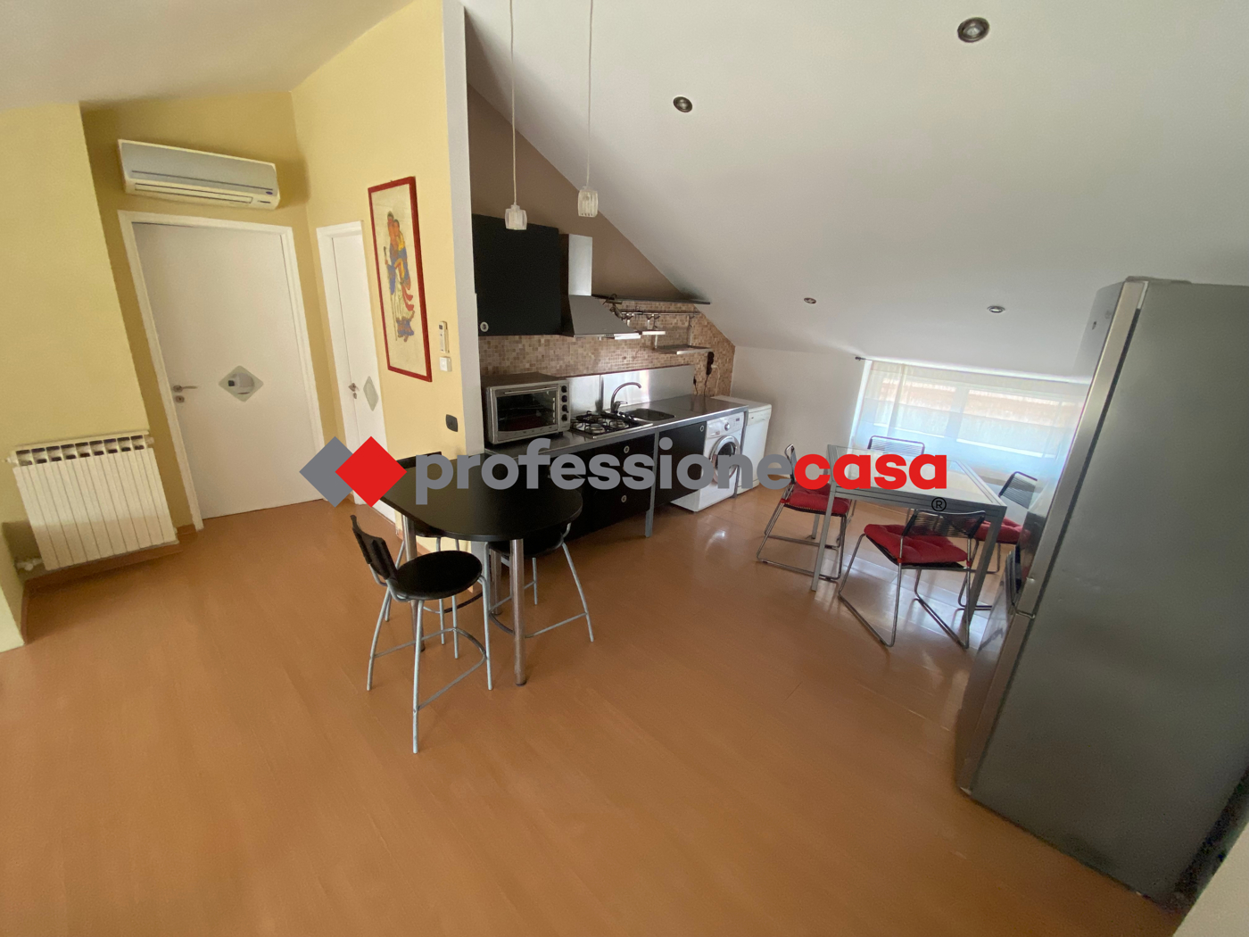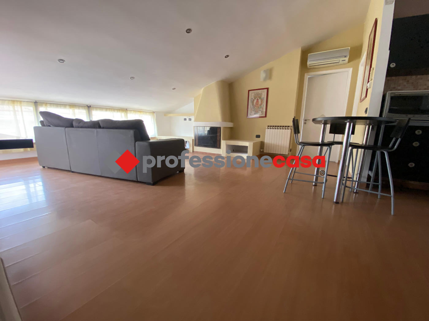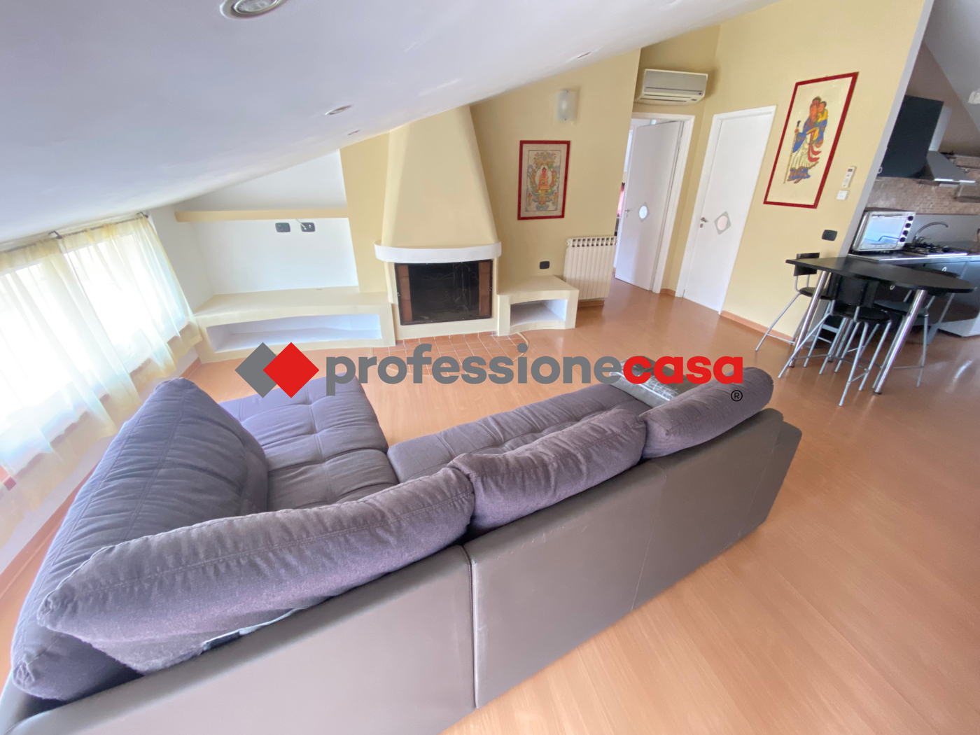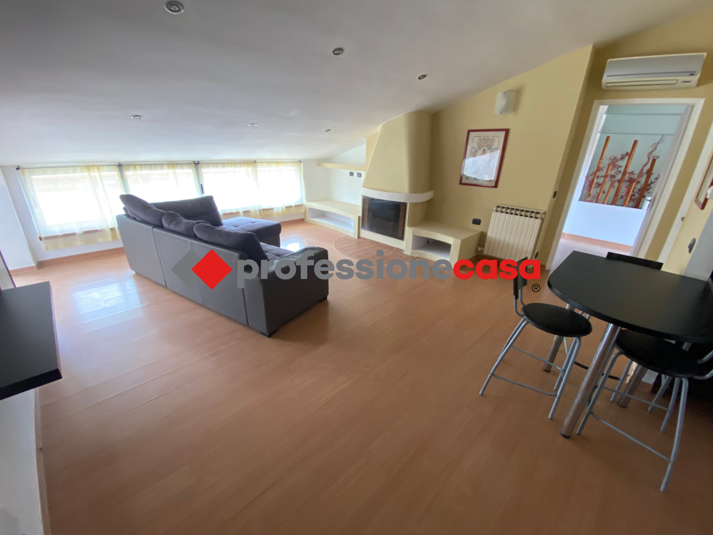 In affitto a San Nicola la Strada (CE), un luminoso appartamento mansardato arredato con 3 locali e 1 bagno, di 75 mq. Situato in un condominio con ascensore, dispone di cantina e giardino condominiale accessibile anche a persone con disabilit.