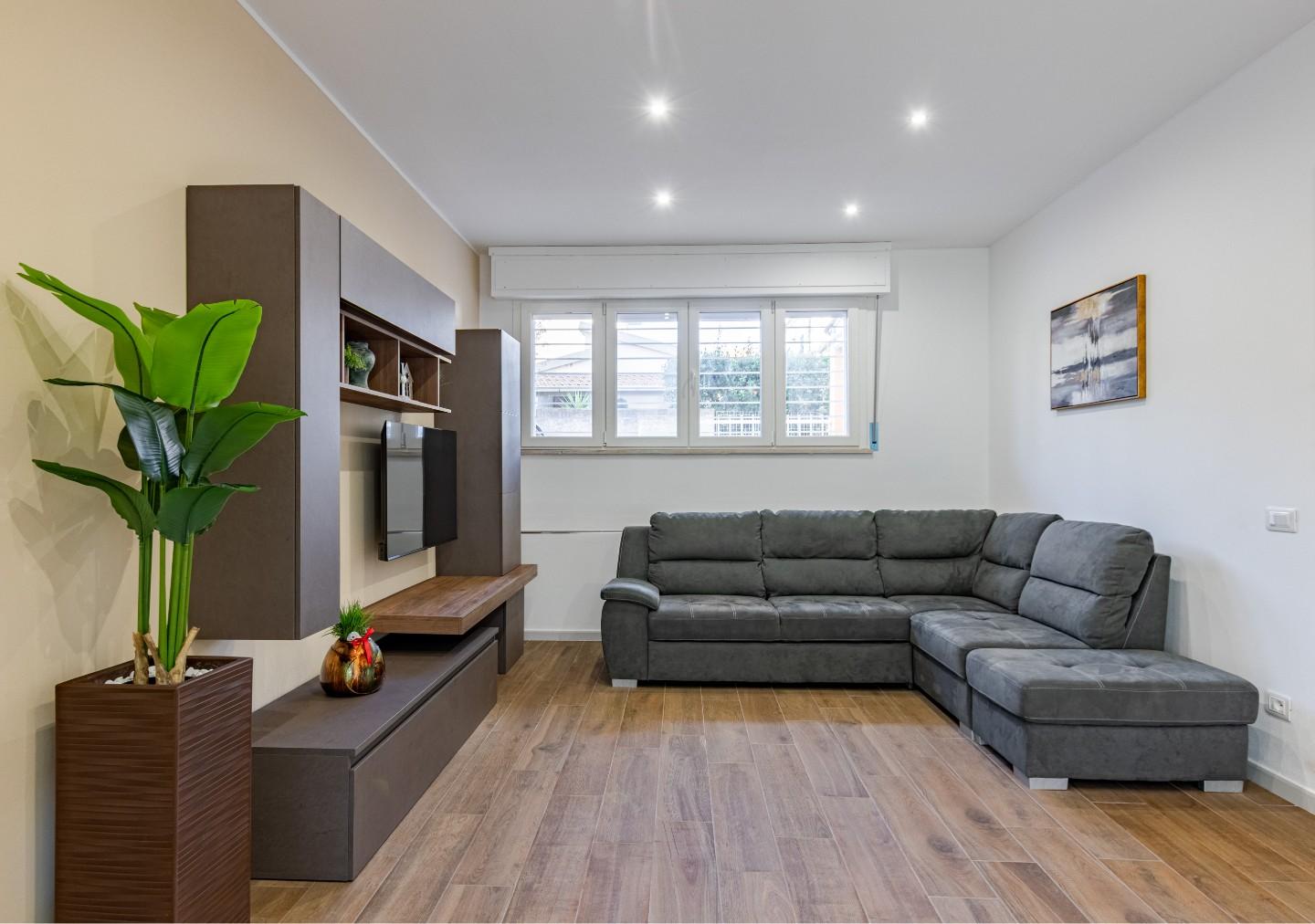 Lappartamento, situato al piano terra leggermente ribassato, gode di una temperatura naturalmente piacevole anche nelle ore più calde, offrendo unoasi di relax e frescura al rientro dal mare. Il cuore della casa è l'ampia zona giorno, uno spazio moderno e accogliente ideale per condividere i momenti conviviali della vacanza.