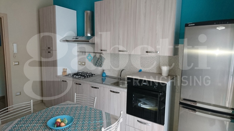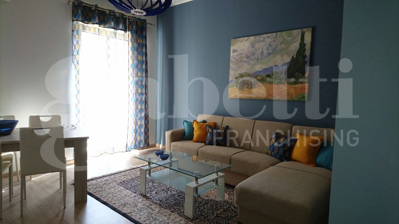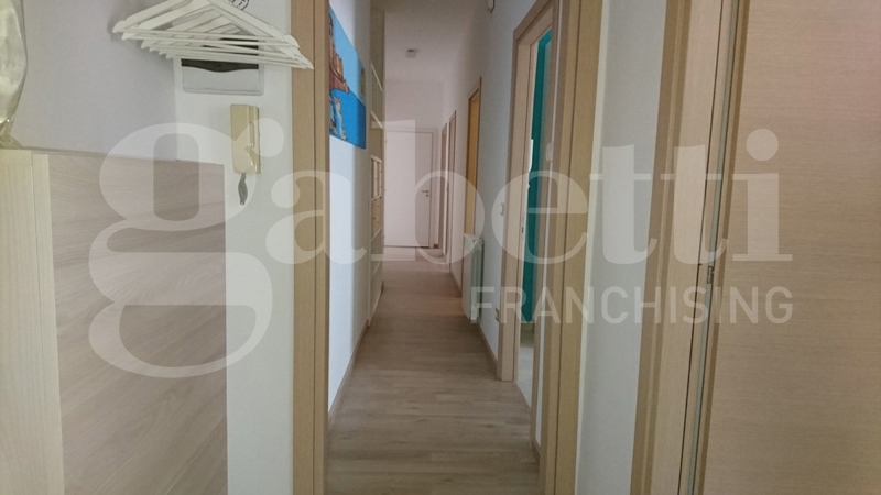 Il trivani ha ingresso sul corridoio, comodo salotto con balcone principale, cucina abitabile con veranda esterna (ricavata nel balcone principale e dove si trova la pilozza e l'area lavanderia), camera da letto matrimoniale con balcone esclusivo, camera singola con finestra, bagno con doccia e finestra, ripostiglio, posto auto libero e recintato.