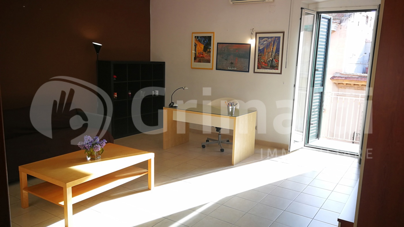 SI FITTA SOLO A REFERENZIATI CON REDDITO DIMOSTRABILE, CONTRATTO TRANSITORIO MASSIMO 18 MESI. In pieno centro cittadino proponiamo appartamento ristrutturato e arredato composto da ingresso in disimpegno, ampia camera con balc., camera media con finestrino e balc., living con balc., cucinotto con balc., bagno completo con box doccia in cristallo e finestrino, piccolo bucataio con wc di servizio con finestrino.