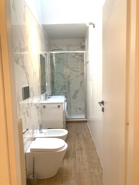 Lappartamento, completamente arredato con mobili di design, è composto da una spaziosa camera matrimoniale, una camera singola, un bagno finestrato in marmo e una luminosa zona giorno con angolo cottura, attrezzato con elettrodomestici di gamma.