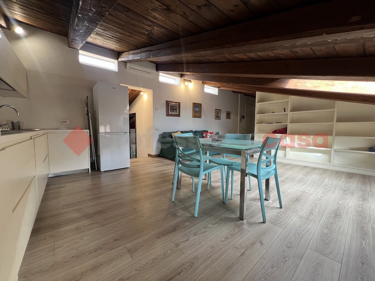 Limmobile caratterizzato da parquet in tutti gli ambienti e da travi a vista, elementi tipici del centro storico che rendono gli spazi accoglienti e ben rifiniti.