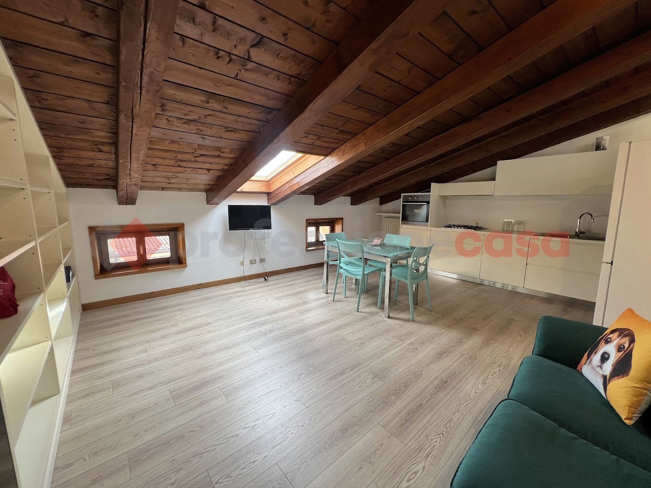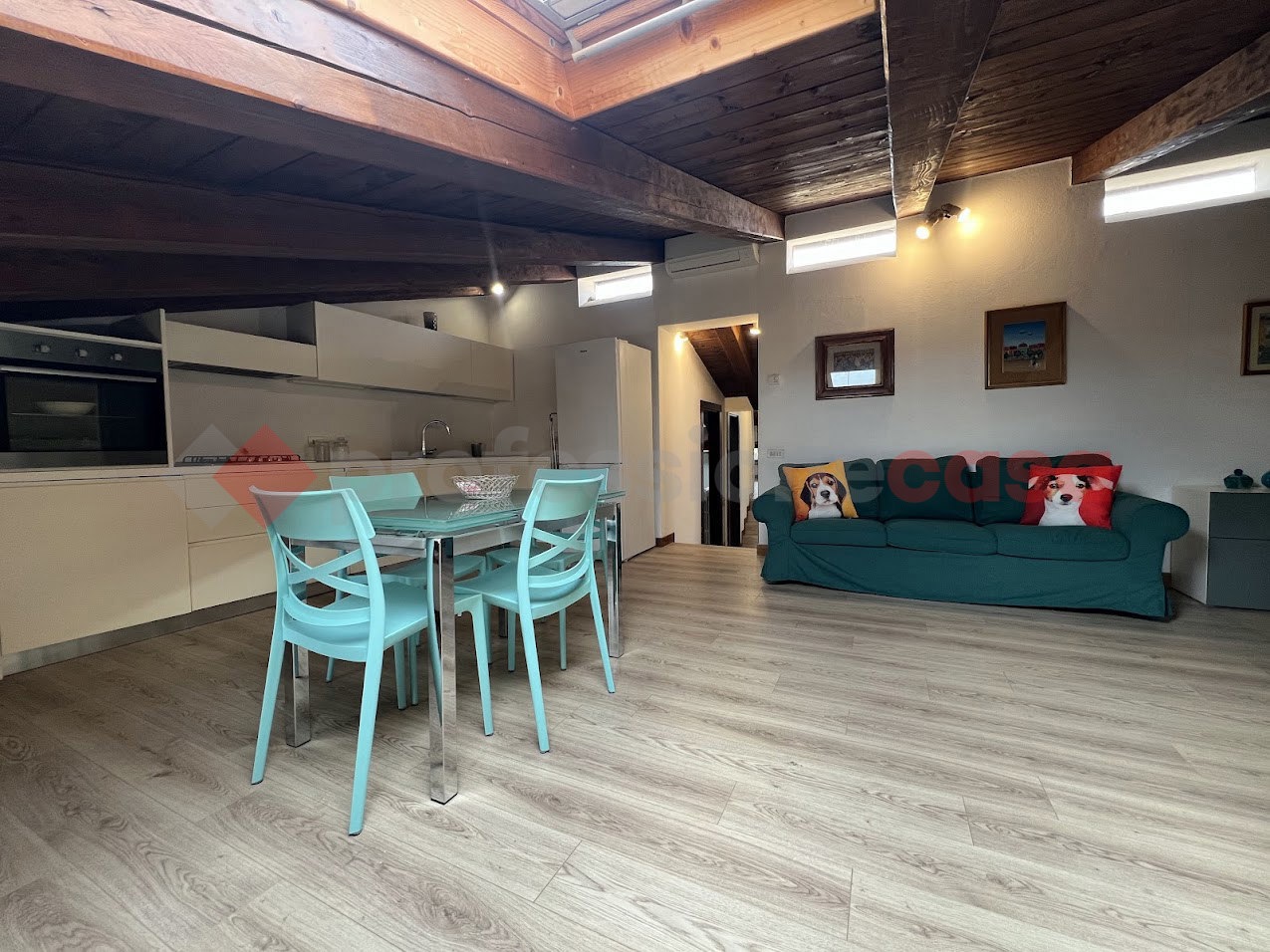 Limmobile caratterizzato da parquet in tutti gli ambienti e da travi a vista, elementi tipici del centro storico che rendono gli spazi accoglienti e ben rifiniti.