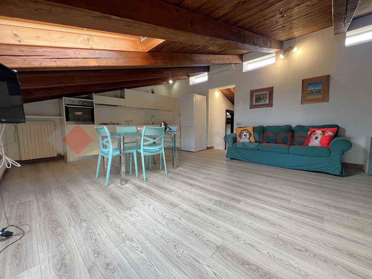 Limmobile caratterizzato da parquet in tutti gli ambienti e da travi a vista, elementi tipici del centro storico che rendono gli spazi accoglienti e ben rifiniti.