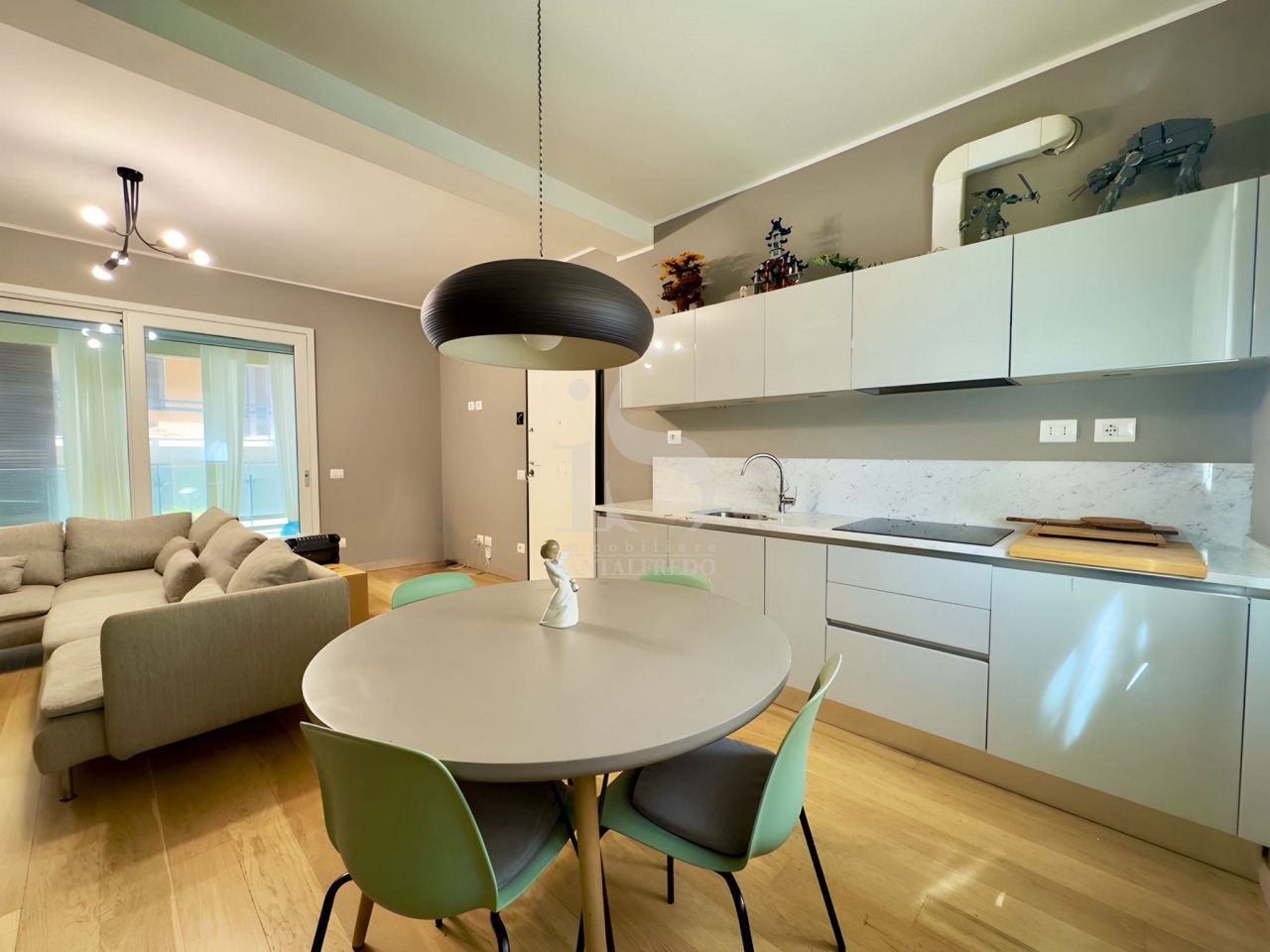 L'appartamento, arredato su misura con mobili di qualità, si distingue per i suoi spazi accoglienti e luminosi.