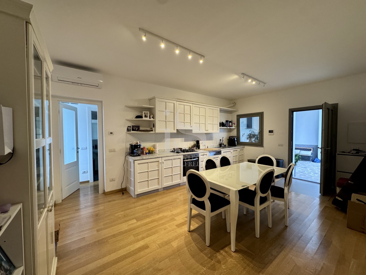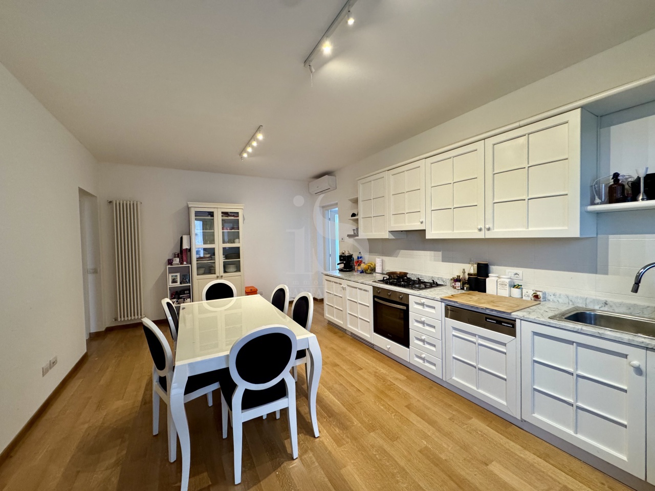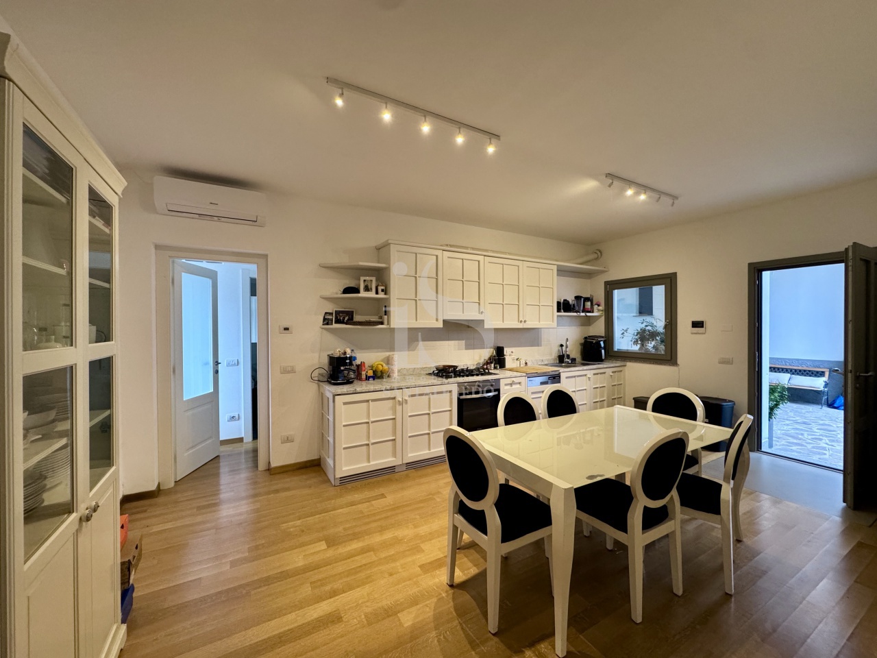 La zona giorno, ampia e aperta, include sala da pranzo e cucina a vista, perfetta per vivere e condividere i momenti di relax.