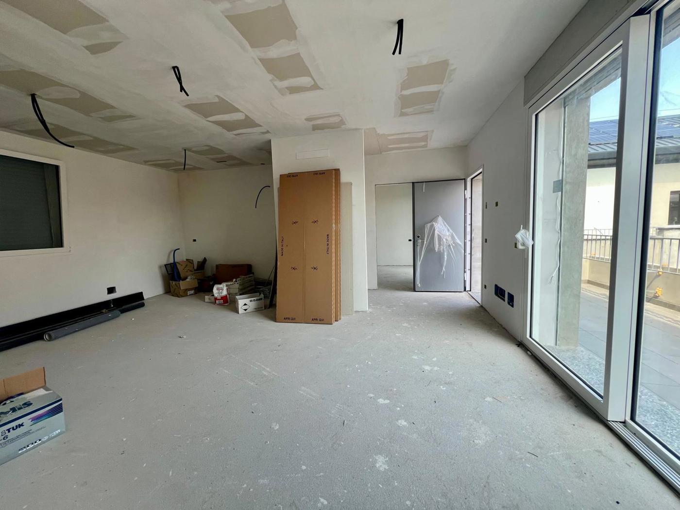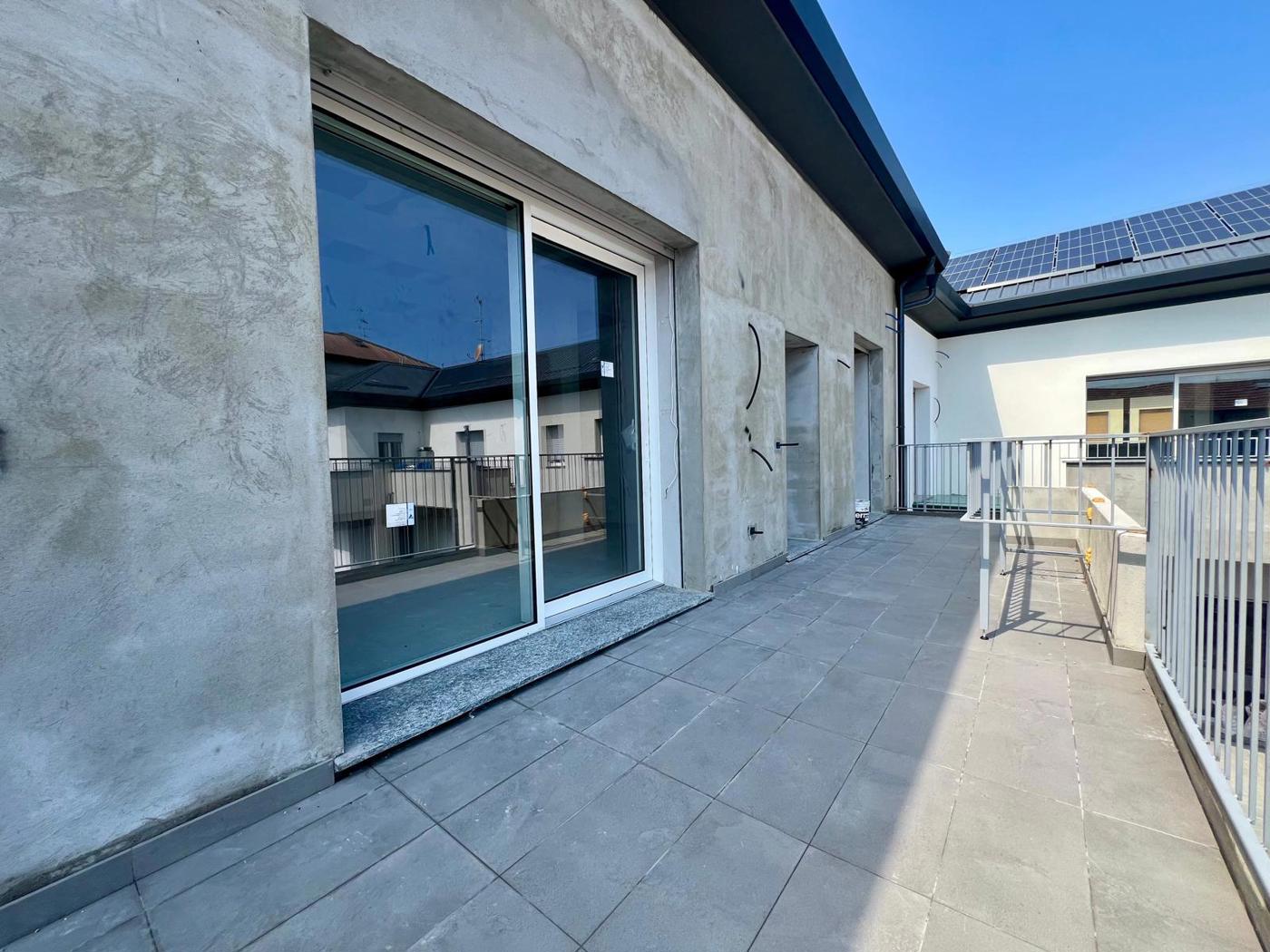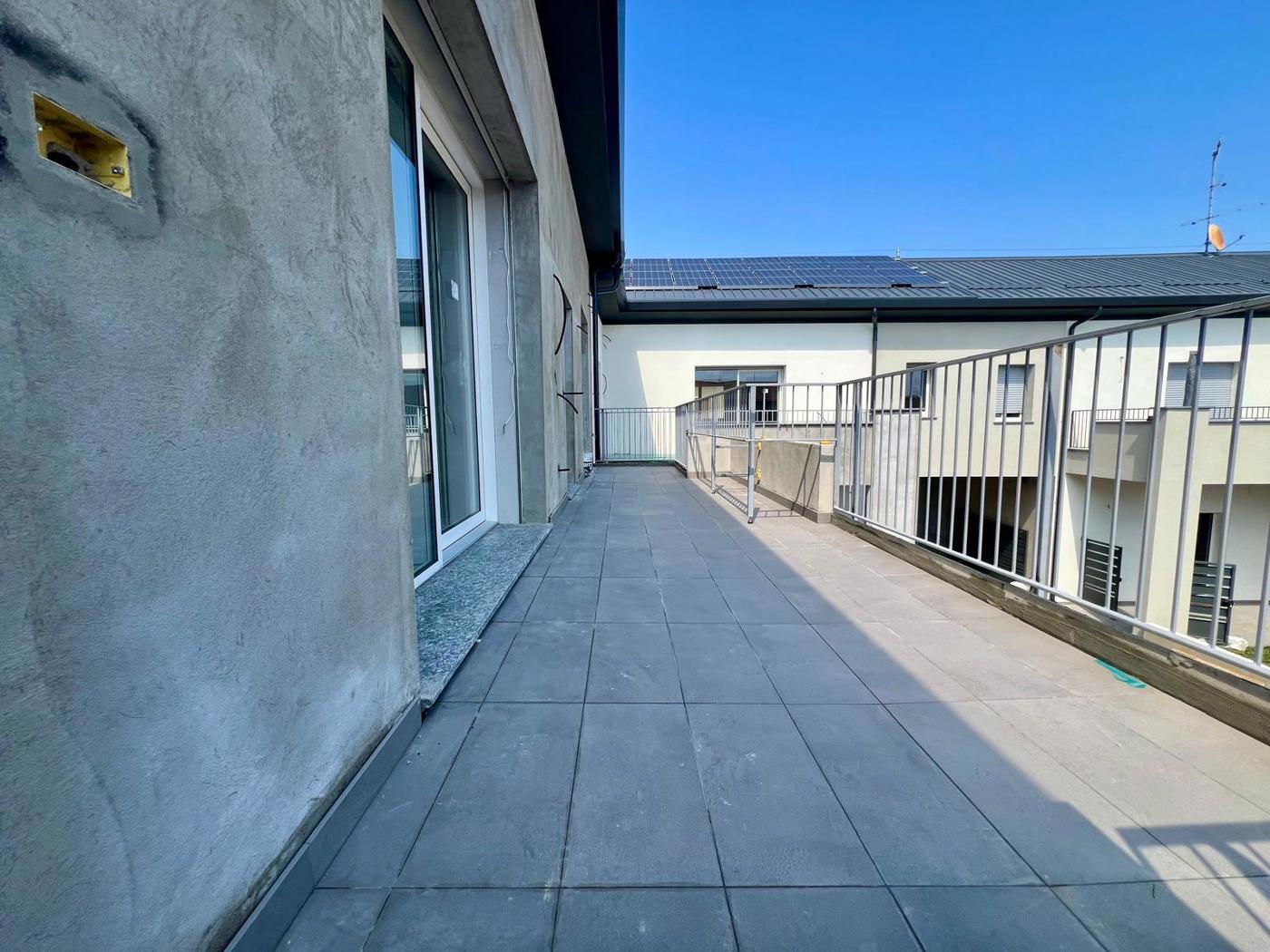 Lappartamento composto da ingresso da terrazzo di 20 mq, ampio soggiorno con cucina a vista, disimpegno, camera matrimoniale con bagno, cameretta, ed un ulteriore bagno.