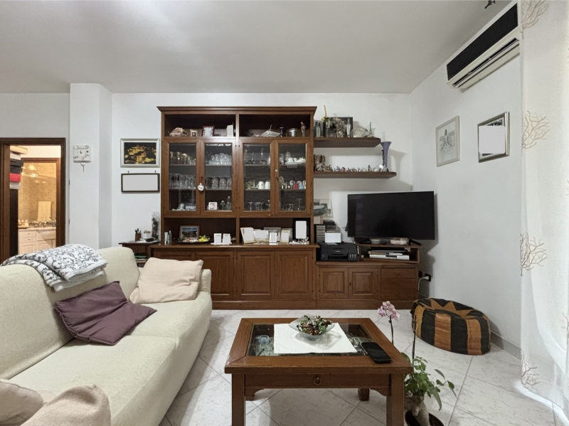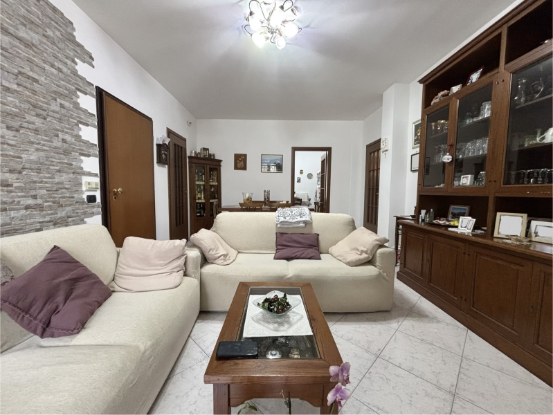 L'appartamento è al primo piano senza ascensore e si compone di: ingresso su soggiorno ampio, ripostiglio, cucina abitabile, due balconi di cui uno con ripostiglio, disimpegno notte, due camere da letto e due bagni.