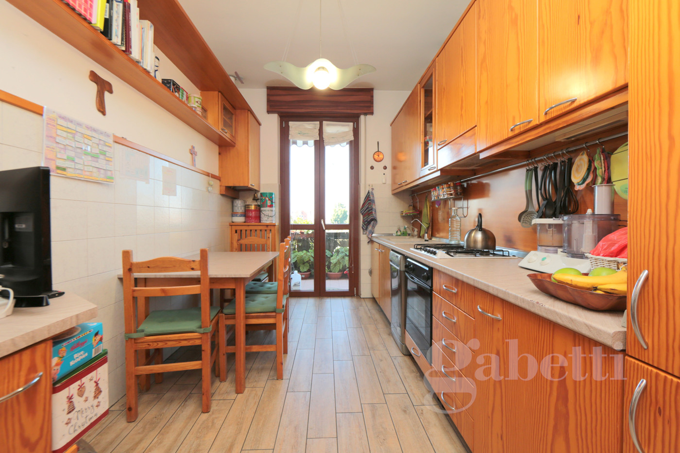 La cucina separata e semiabitabile, anchessa con accesso al balcone, funzionale e ben illuminata.