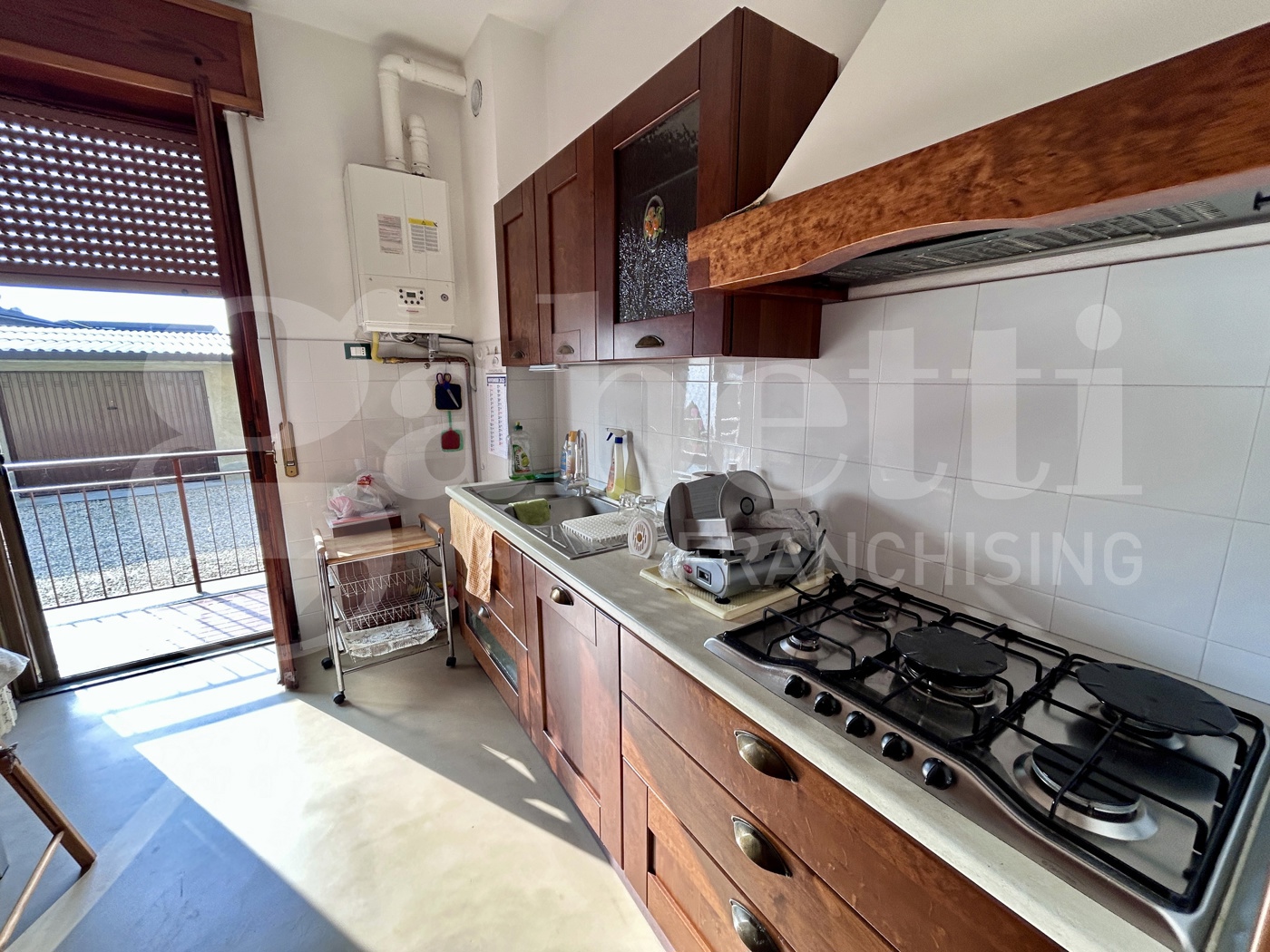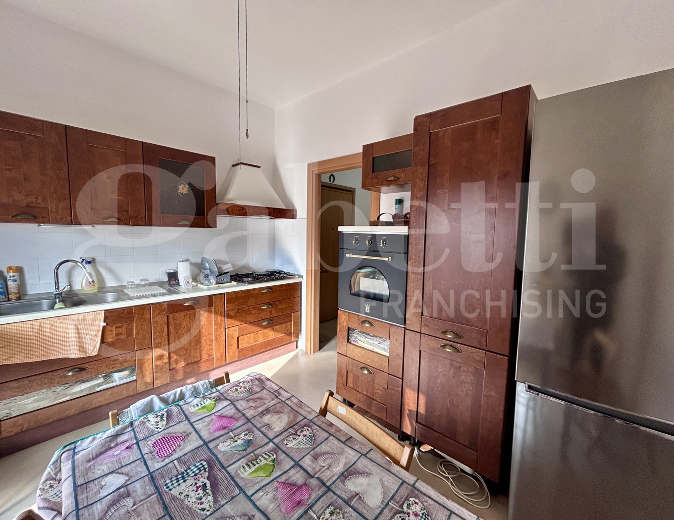 Dotato di riscaldamento autonomo, dispone di una cucina abitabile, soggiorno singolo, due camere da letto e doppi servizi.