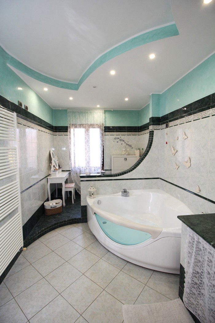 Tutti gli ambienti sono caratterizzati da abbassamenti in cartongesso e faretti.