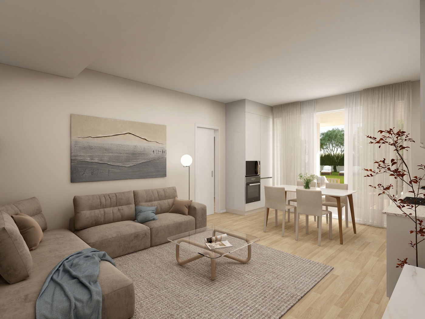 Inizio lavori giugno 2024 consegna 18 mesi APPARTAMENTO 4: Tre locali, posto al piano terra con giardino angolare di mq. 240 - Lappartamento composto da ingresso nella zona living servita da porticato di 20 mq. affacciato sul giardino, disimpegno, due camere e bagno. Contatta l'inserzionista