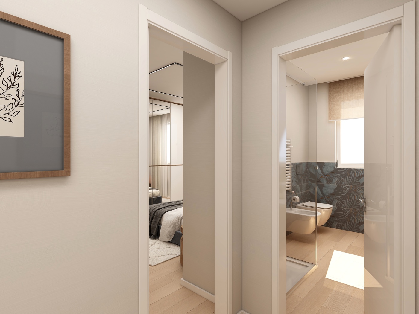 Inizio lavori giugno 2024 consegna 18 mesi APPARTAMENTO 9: Tre locali, posto al primo piano - Lappartamento composto da ingresso nella zona living servita da terrazzo loggiato di 17mq, disimpegno, due camere e doppi servizi oltre a secondo balcone. Contatta l'inserzionista