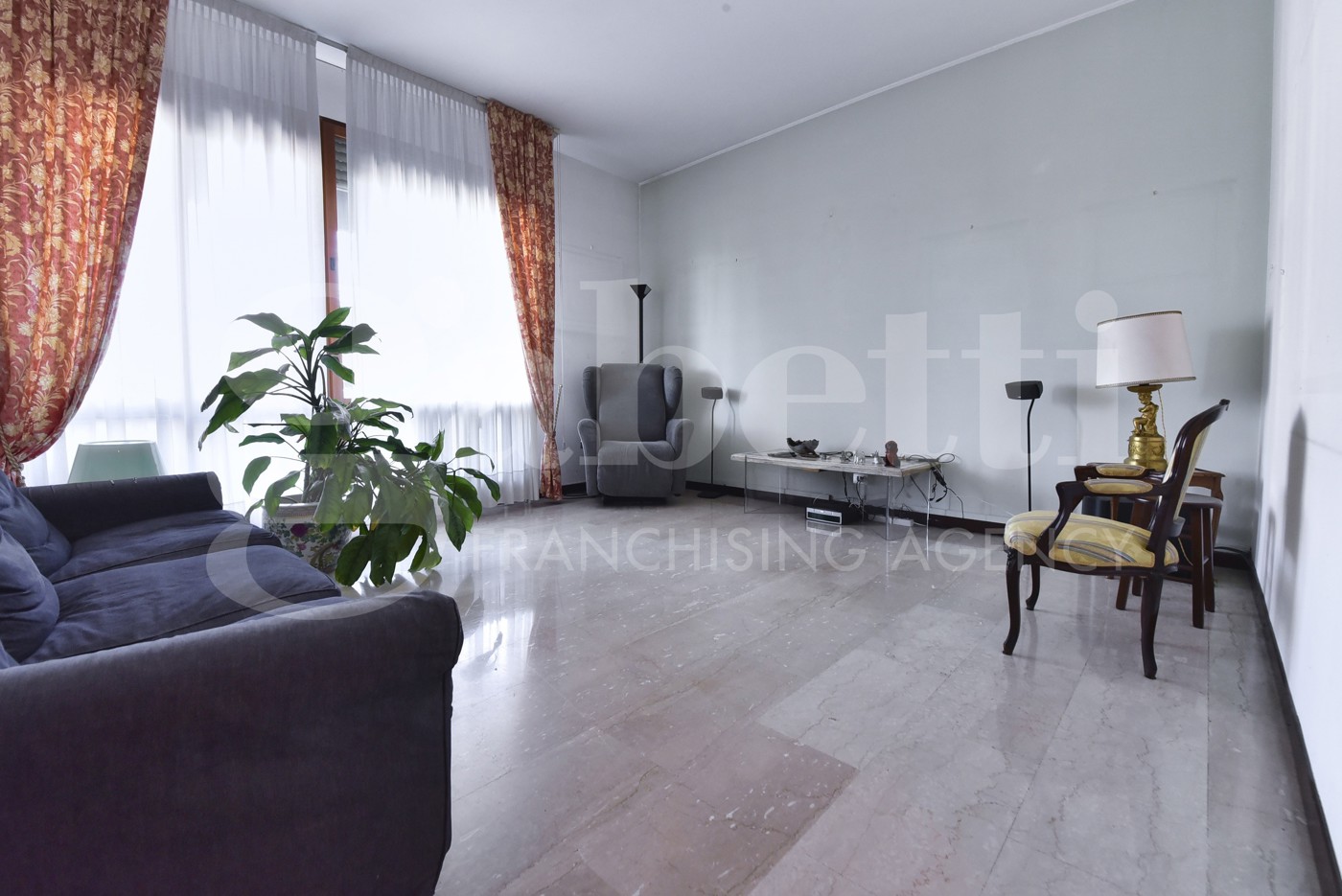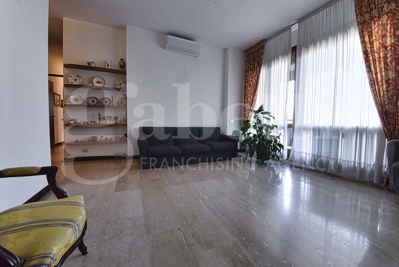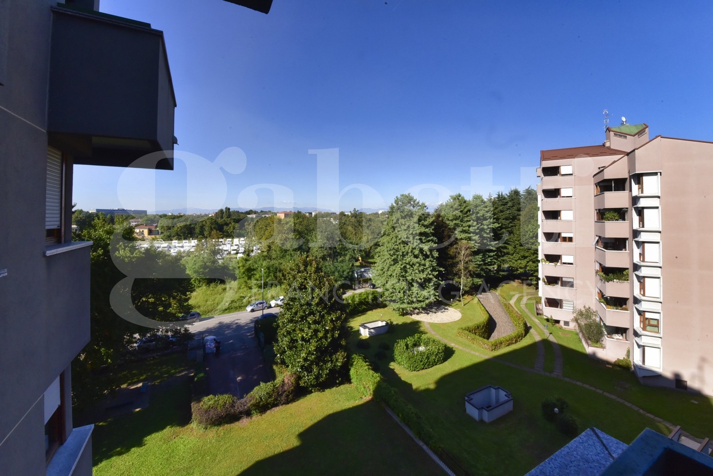 MONZA/TRIANTE Panoramica soluzione abitativa A PIANO ALTO (quinto) di circa 110 mq di superficie cos distribuita: ingresso, soggiorno e cucina abitabile, entrambi aventi accesso al TERRAZZINO VIVIBILE in aggetto sul giardino condominiale, ripostiglio/guardaroba; disimpegno alla zona notte composta da due camere matrimoniali e due bagni.