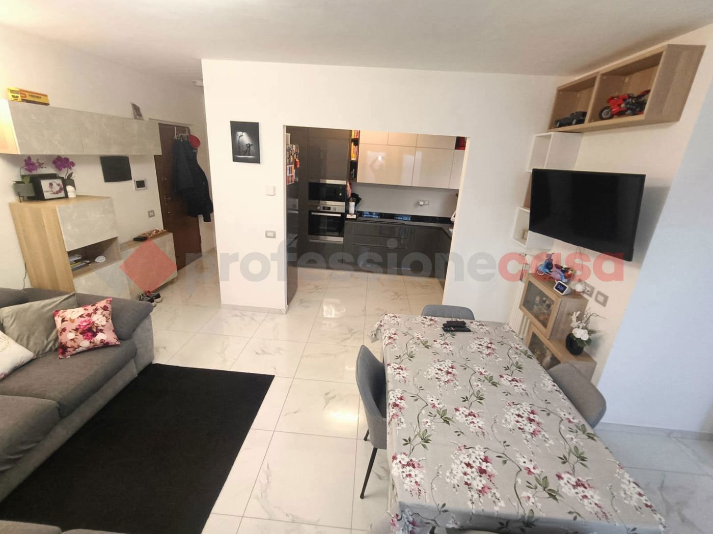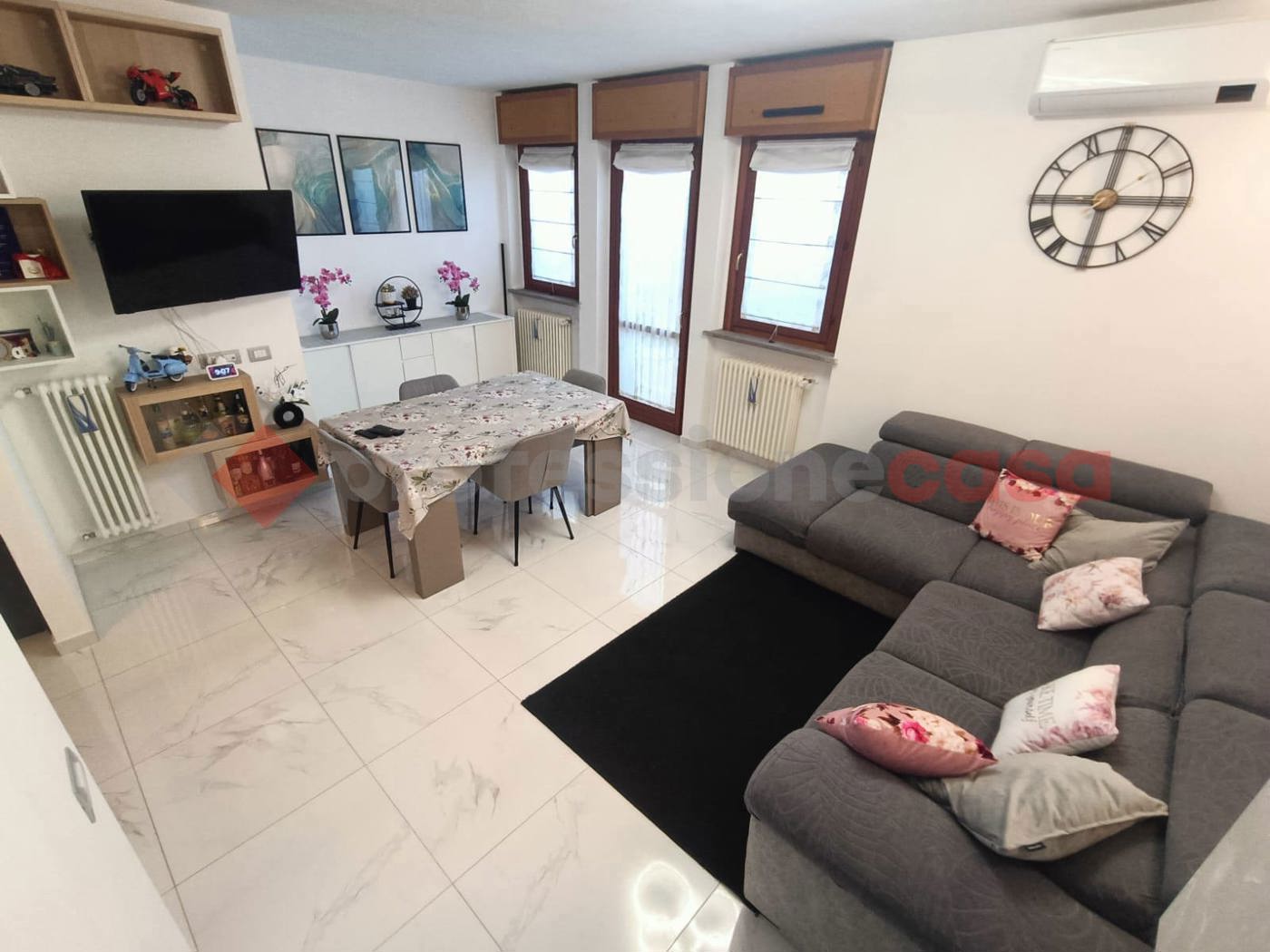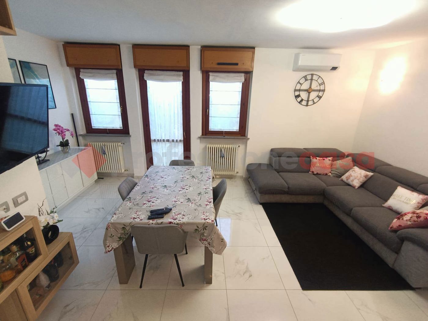 L'interno, in condizioni ottime, presenta una cucina abitabile, un luminoso soggiorno living e due camere da letto, garantendo comfort e privacy.