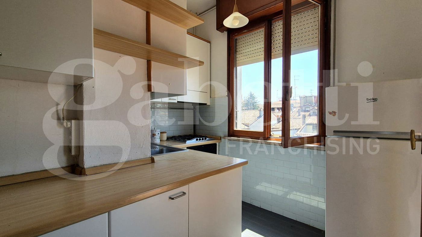 Sito in zona centrale, al terzo piano di un condominio interno servito da ascensore, luminoso appartamento con piacevoli affacci sui tetti del centro citt. Internamente presenta finiture originali ed eccezione dei serramenti che hanno i doppi vetri; i pavimenti sono in marmo e parquet, le porte interne in legno.