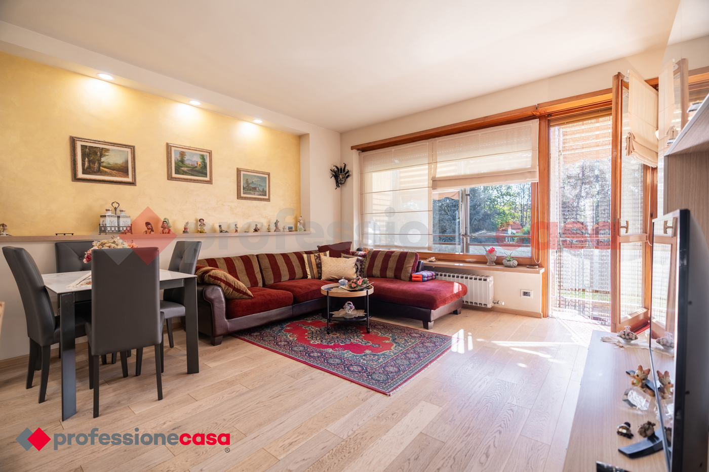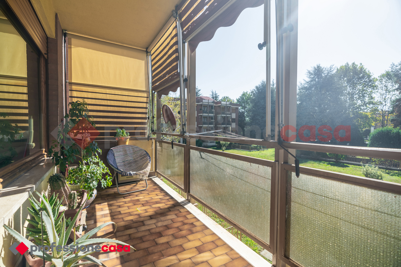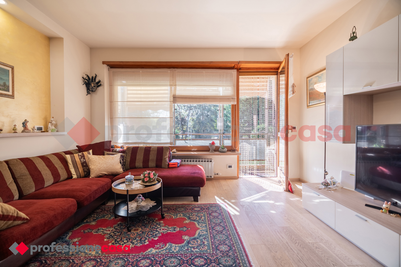 Questo spazio ,inoltre, caratterizzato dalla presenza di un ampia vetrata ,dotata di vetro doppio , creando un legame visivo con l'esterno; un gradevole terrazzo offre l'opportunit di rilassarsi alla vista del parco condominiale, un'oasi verde.