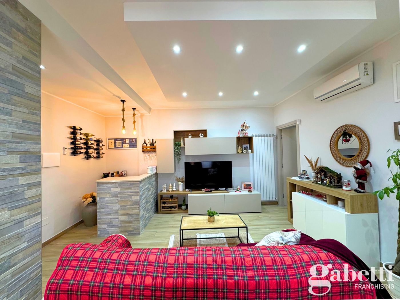 Limmobile, ben distribuito e rifinito con cura, di 3 vani + 2 acc. ri ed composto da: ampio open space con zona living e cucina, camera da letto con cabina armadio, cameretta e doppio servizio.