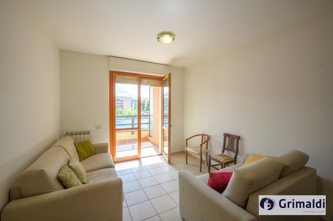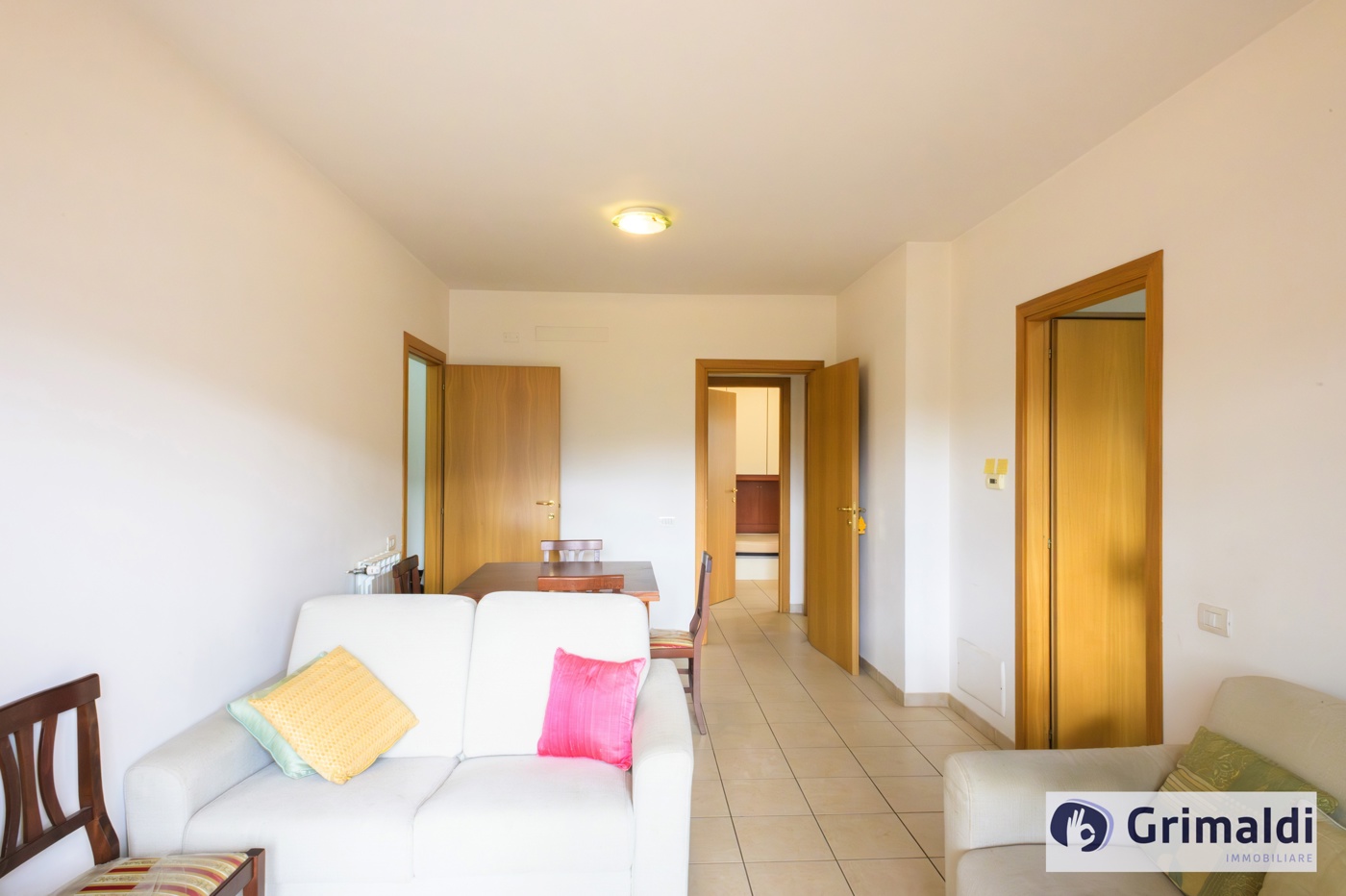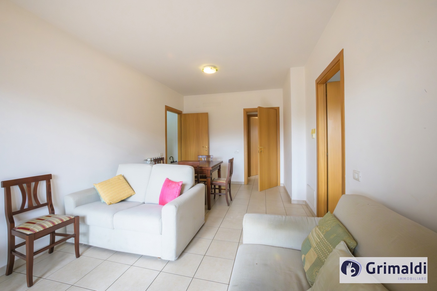 Internamente, lappartamento composto da un soggiorno accogliente con accesso diretto al terrazzo, cucina separata, camera matrimoniale, cameretta e bagno con finestra.