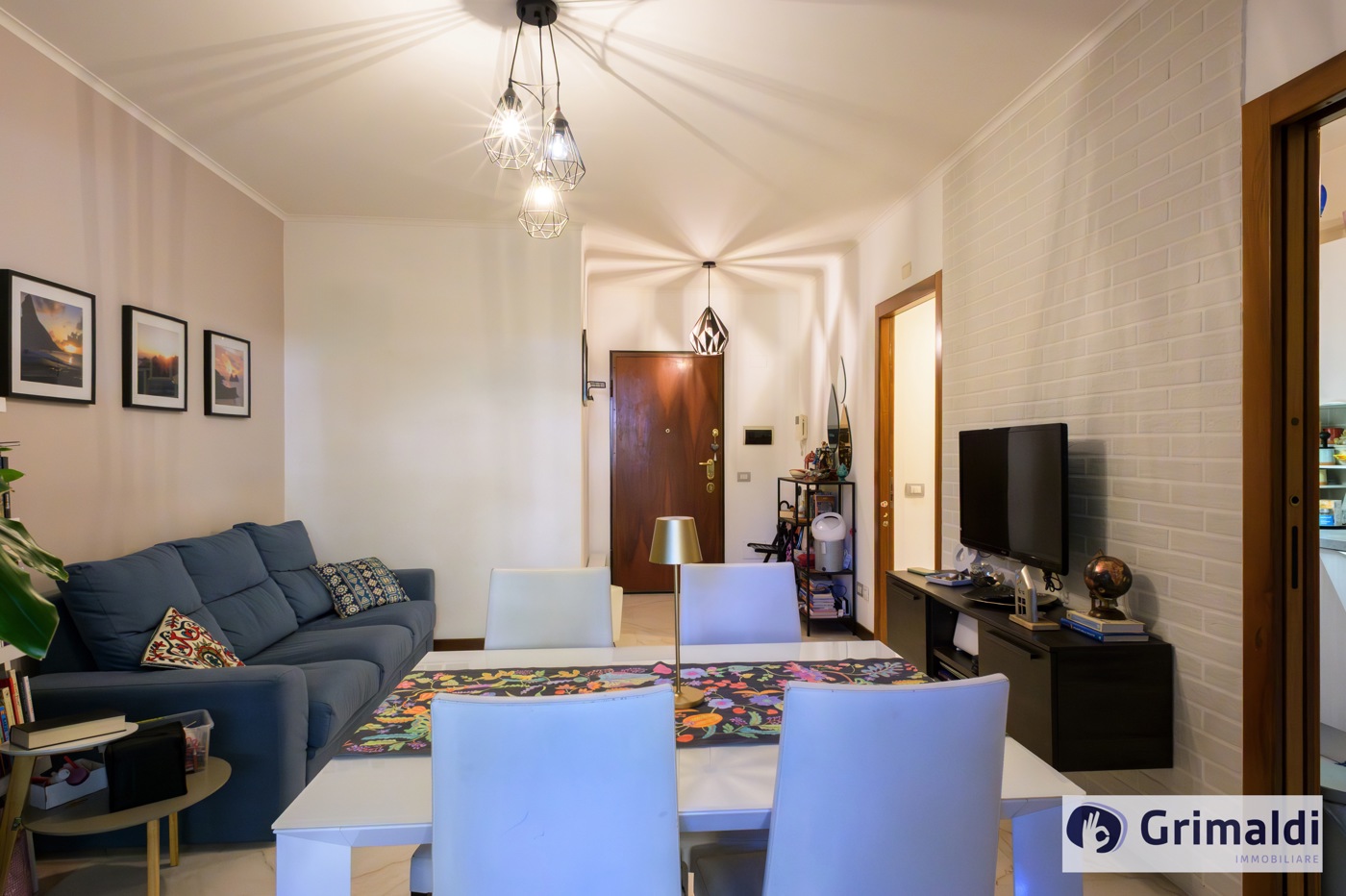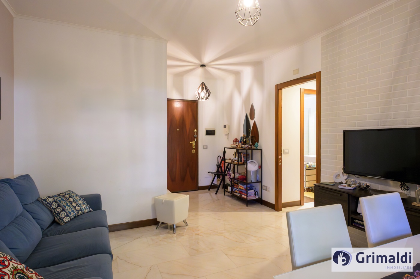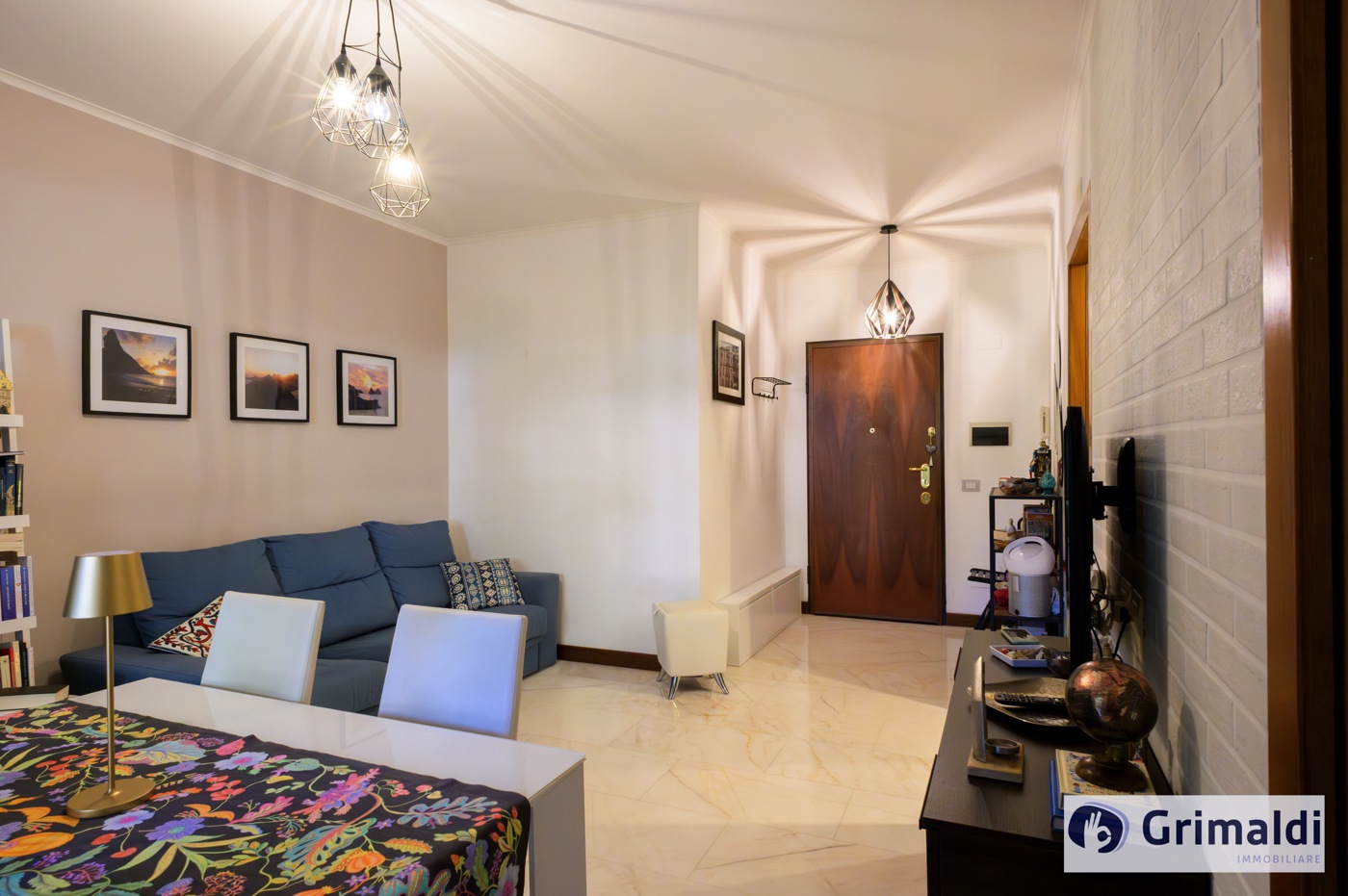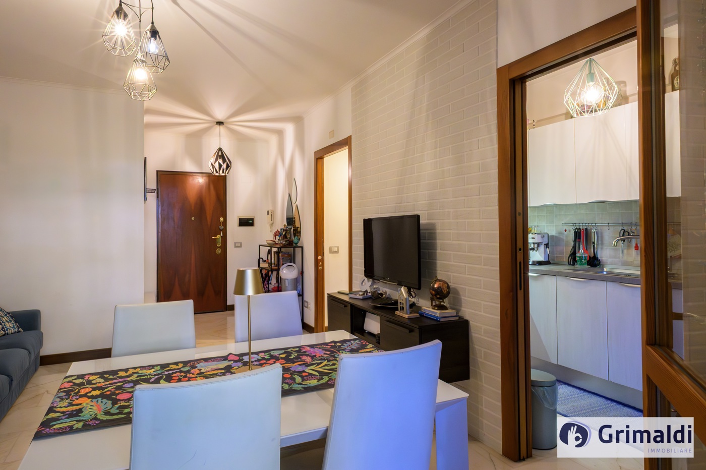 L'unit abitativa composta da soggiorno, dove la porta finestra fa da protagonista aprendo lo sguardo sul balcone vivibile, la cucina separata con finestra ed affaccio sul medesimo balcone, disimpegno per la zona notte con due camere da letto, entrambe con affaccio su altro ampio balcone, servizio finestrato con vasca ed altro bagno con doccia.