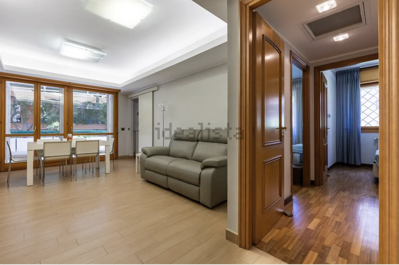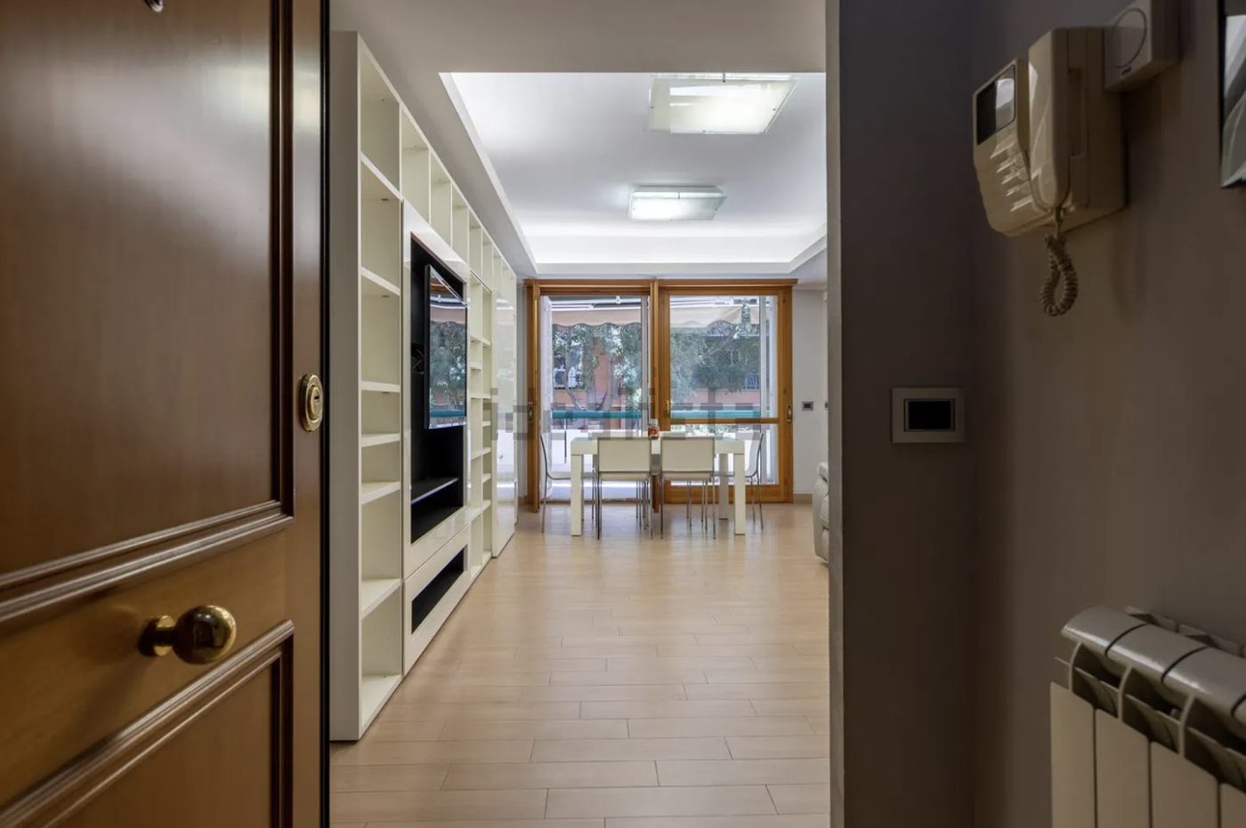 In Viale Citt dEuropa, adiacente il recente polo commerciale con il rinomato c.c. Euroma2, in palazzina residenziale in cortina con ascensore, proponiamo la vendita di un appartamento posto al 1° piano con doppia e solare esposizione angolare, balcone vivibile e box auto di propriet.