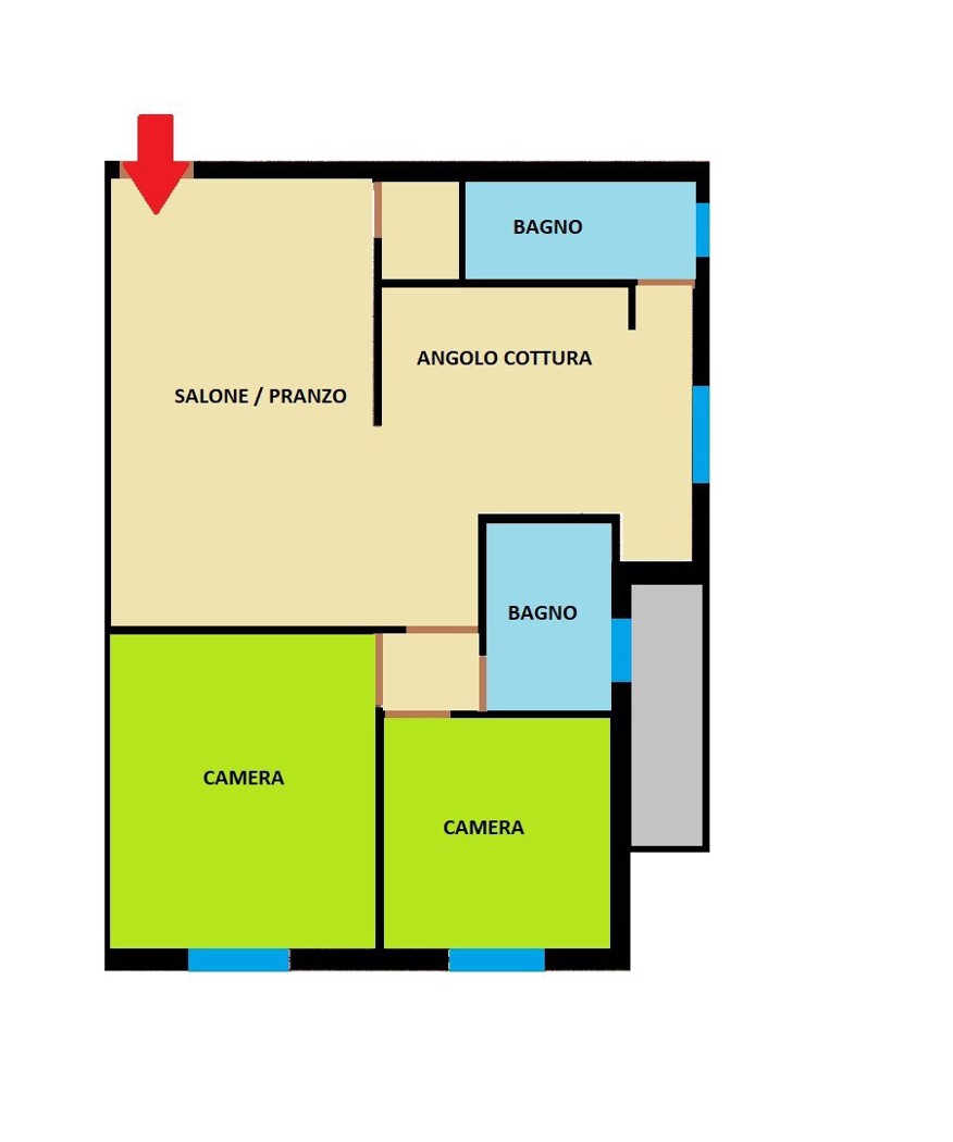 Le due camere da letto, la cucina a vista e il luminoso soggiorno singolo creano un ambiente accogliente e funzionale.