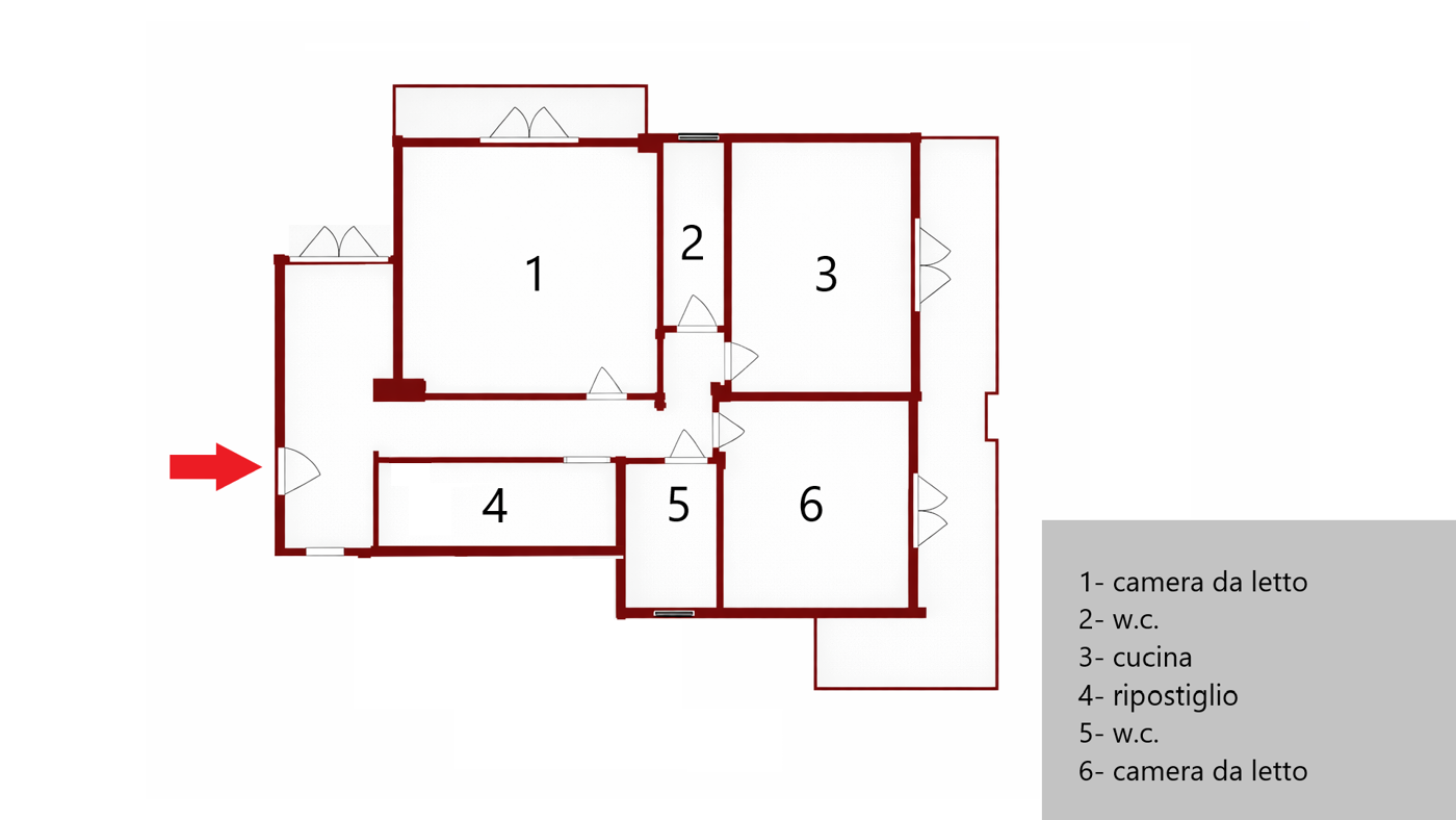 Con una superficie di circa 105m, limmobile offre spazi ben distribuiti: cucina, sala, due camere da letto, due bagni, ripostiglio e due balconi.