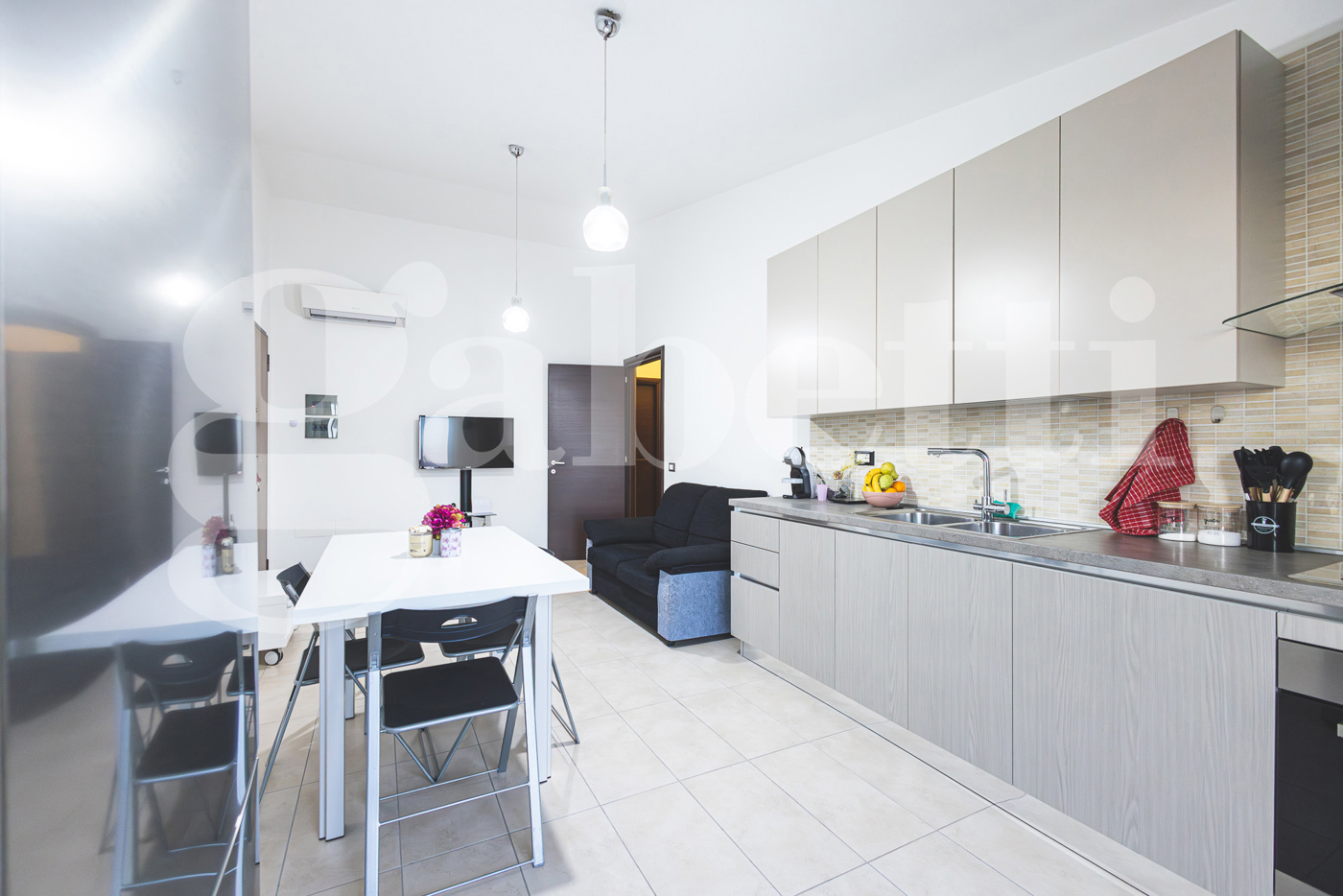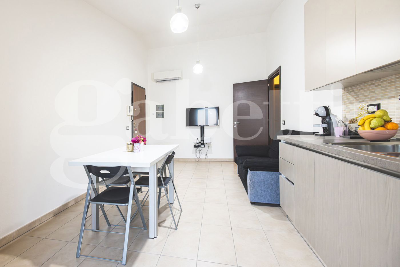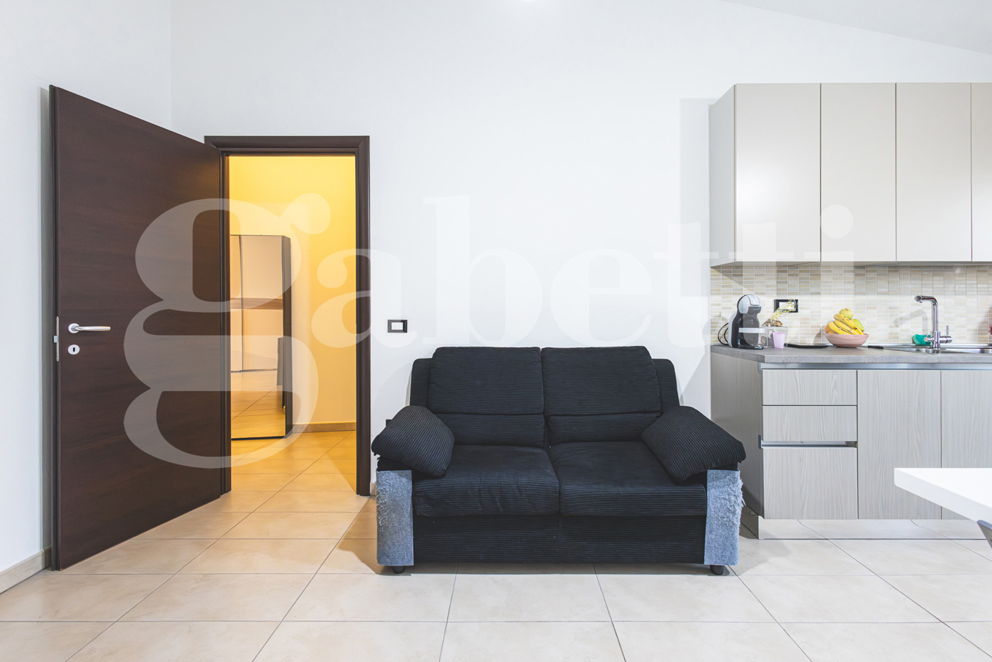 L'immobile composto da soggiorno con angolo cottura, disimpegno, antibagno con zona lavanderia, bagno con doccia, camera matrimoniale e camera singola.