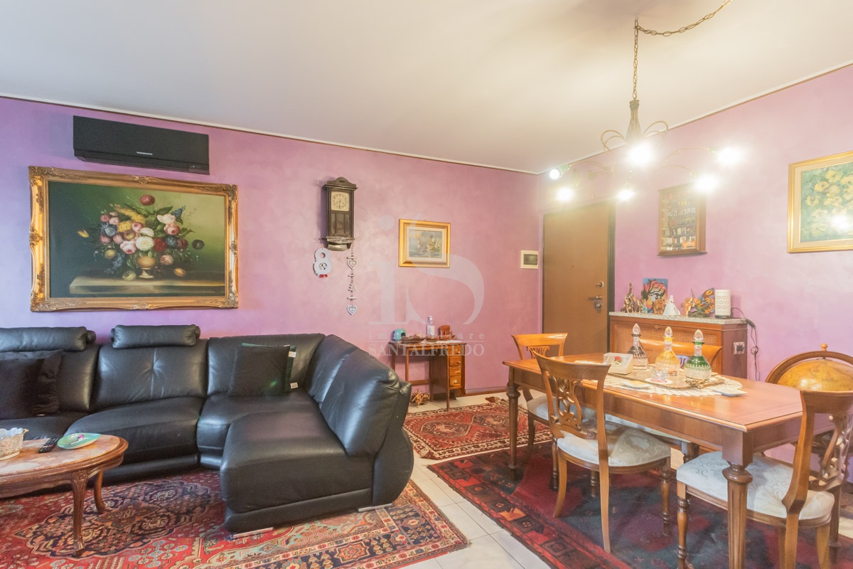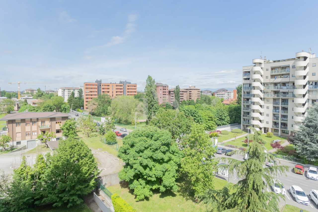 L'appartamento ha una superficie di circa 90 mq ed è distribuito in modo funzionale: soggiorno con accesso al balcone cucina abitabile separata due camere da letto due bagni due ampi balconi, uno a servizio della zona giorno e uno della camera da letto principale Dotazioni e dettagli L'altezza del piano garantisce vista aperta e ariosa; nelle giornate limpide lo sguardo si estende fino al profilo delle montagne, offrendo una percezione di spazio e luce difficilmente replicabile ai piani più bassi.