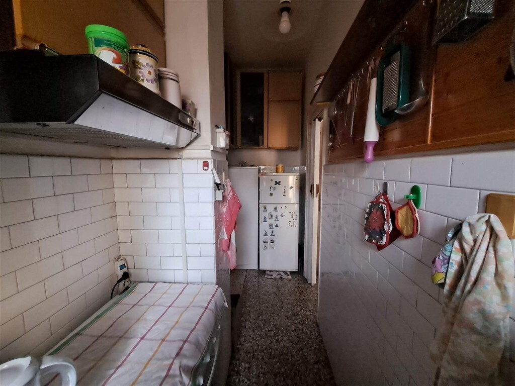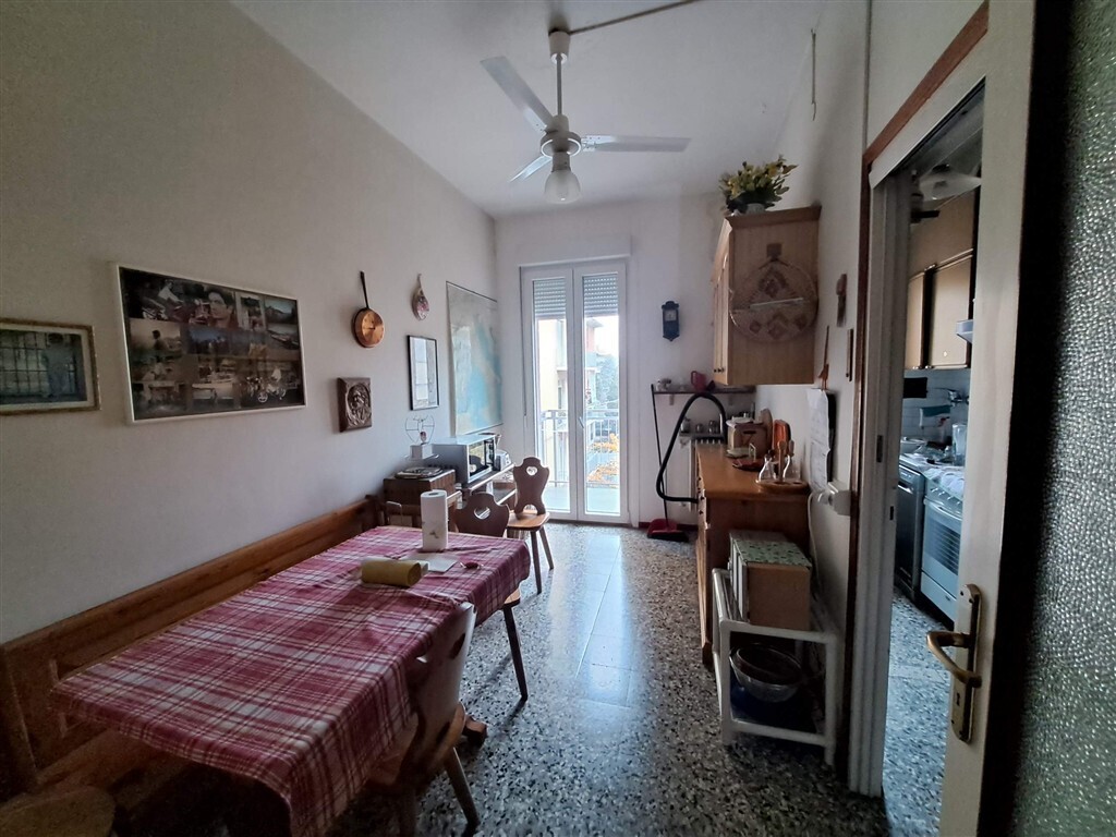 Ingresso, soggiorno, cucinotto, sala pranzo con balcone, corridoio di disimpegno, due camere matrimoniali, bagno.