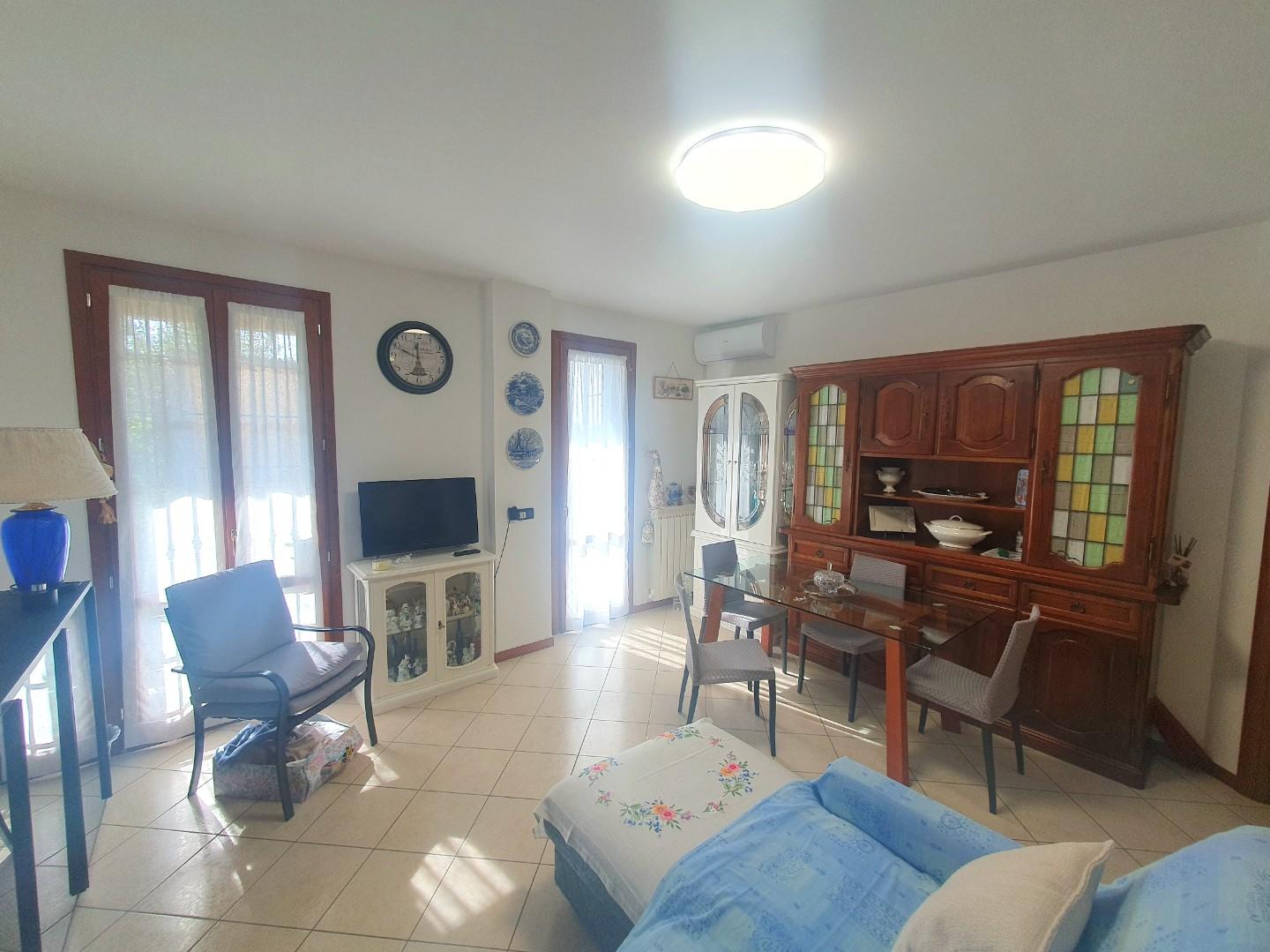 Inoltre la presenza di un piano seminterrato condominiale, chiuso a garage con bascula motorizzata, permette di parcheggiare al riparo 2 posti auto di proprietà. L'abitazione si compone da ingresso nella luminosa zona giorno grazie alle due porte finestre per accedere direttamente al giardino.