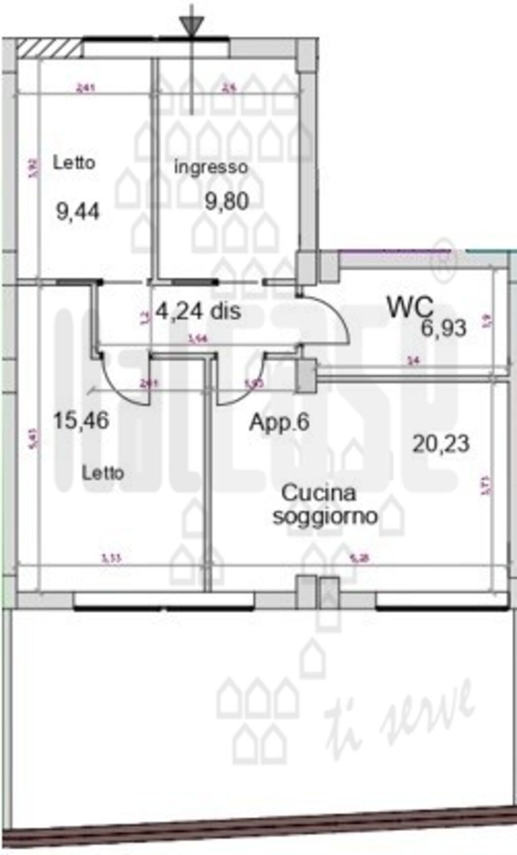 l'appartamento si sviluppa su di un unico piano composto da ingresso, disimpegno che divide gli ambienti, cucina/soggiorno, 2 camere da letto e 1 bagno.