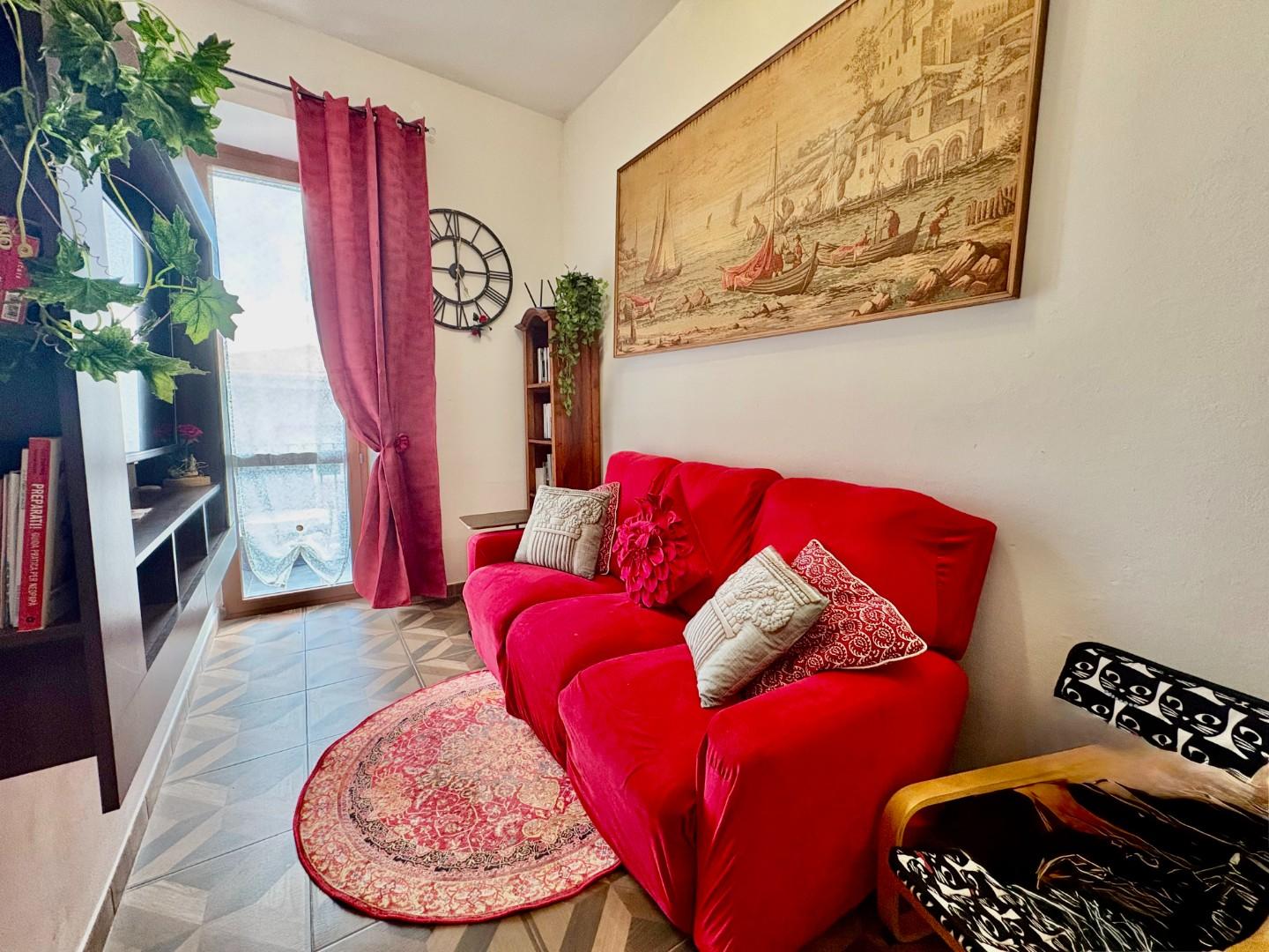 Accanto, un accogliente salottino si affaccia su un delizioso terrazzo, ideale per rilassarsi allaria aperta o godersi un caffè al mattino.