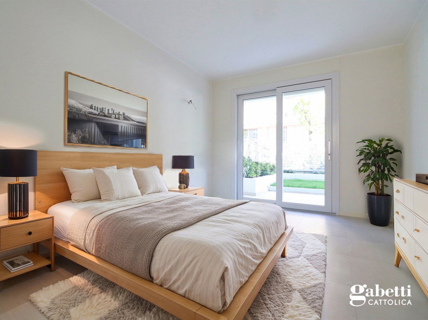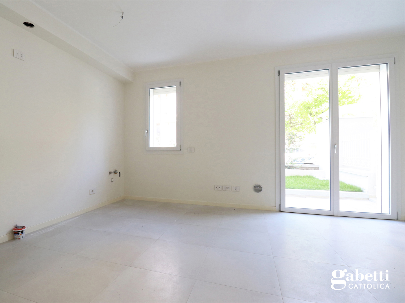 CATTOLICA ZONA CENTRO MARE - ULTIME UNIT ABITATIVE RIMASTE - In posizione centralissima a pochi passi dal mare, in una delle zone pi esclusive e ricercate di Cattolica, proponiamo in palazzina di nuova realizzazione, luminoso trilocale al piano terra in classe A4, composto da ampio soggiorno con angolo cottura indipendente, zona pranzo, zona conversazione e tv affacciato sul giardino, disimpegno, comodo bagno con ampio box doccia, secondo bagno con funzione lavanderia, camera matrimoniale con loggia affacciata sul giardino, seconda camera affacciata sulla loggia e giardino di pertinenza.