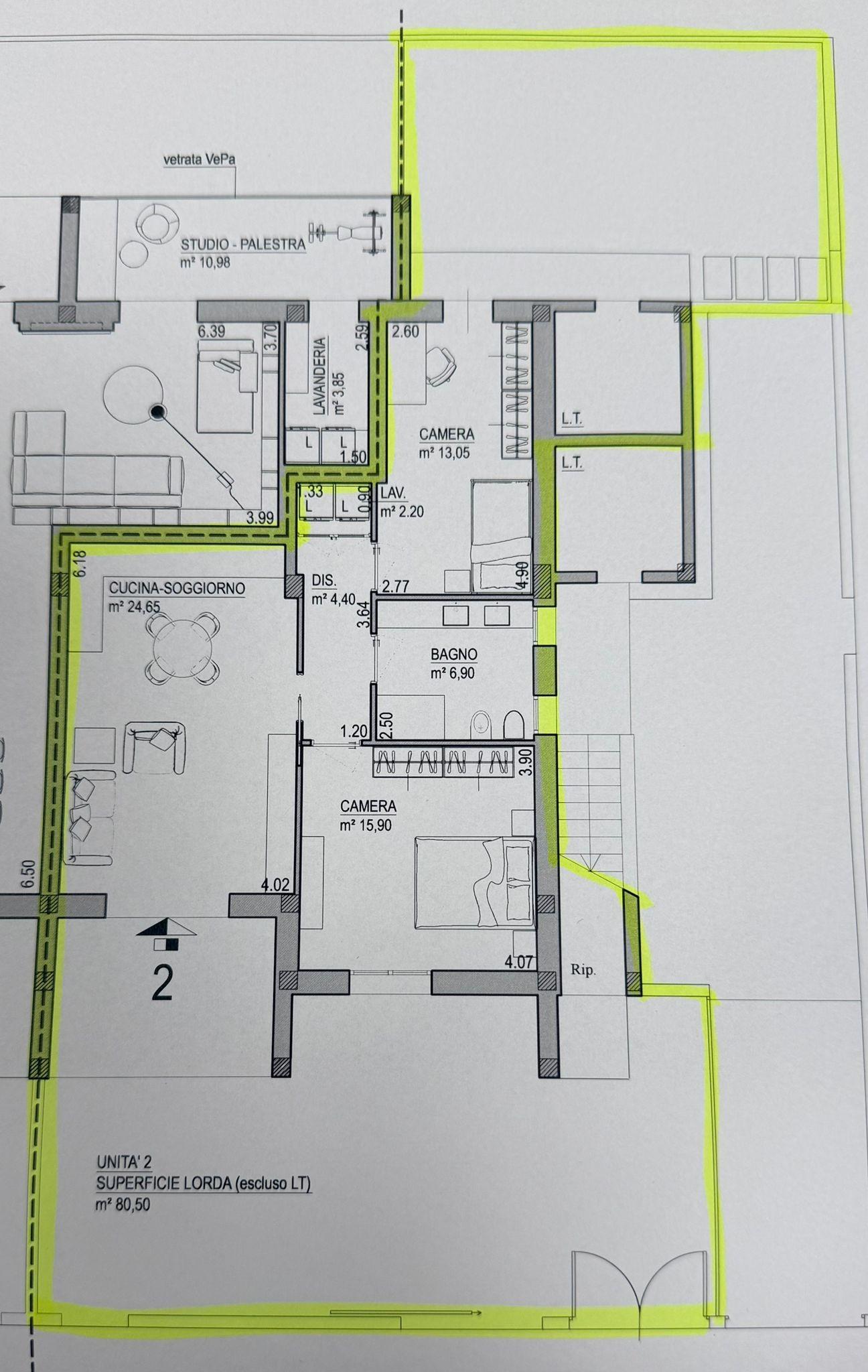 La soluzione al PIANO TERRENO ha il giardino d'ingresso, il porticato, con vetrata di accesso al soggiorno / cucina, disimpegno, due bagni, due camere, (da una camera si accede al secondo portico e al giardino sul retro). Le caratteristiche costruttive e l'ottimo capitolato, oltre agli impianti di ultima generazione (pannelli fotovoltaici, pompe di calore, ecc) faranno sì di poter realizzare immobili con alte prestazioni Energetiche, vicini al fabbricato passivo.
